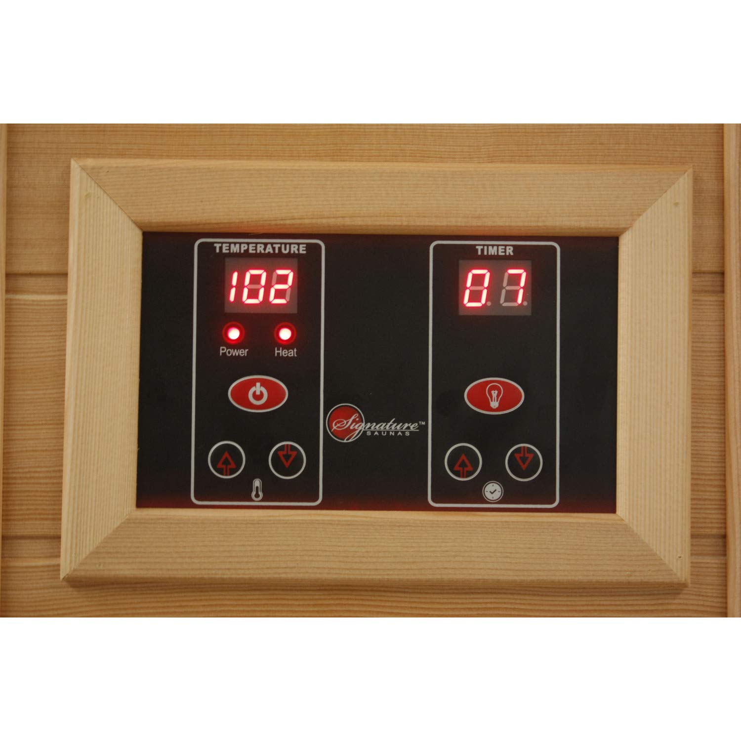 - 9 Maxxus Low EMF FAR Infrared Carbon heating panels 3 on each of the 2 rear walls, 2 under the bench and 1 on the floor board