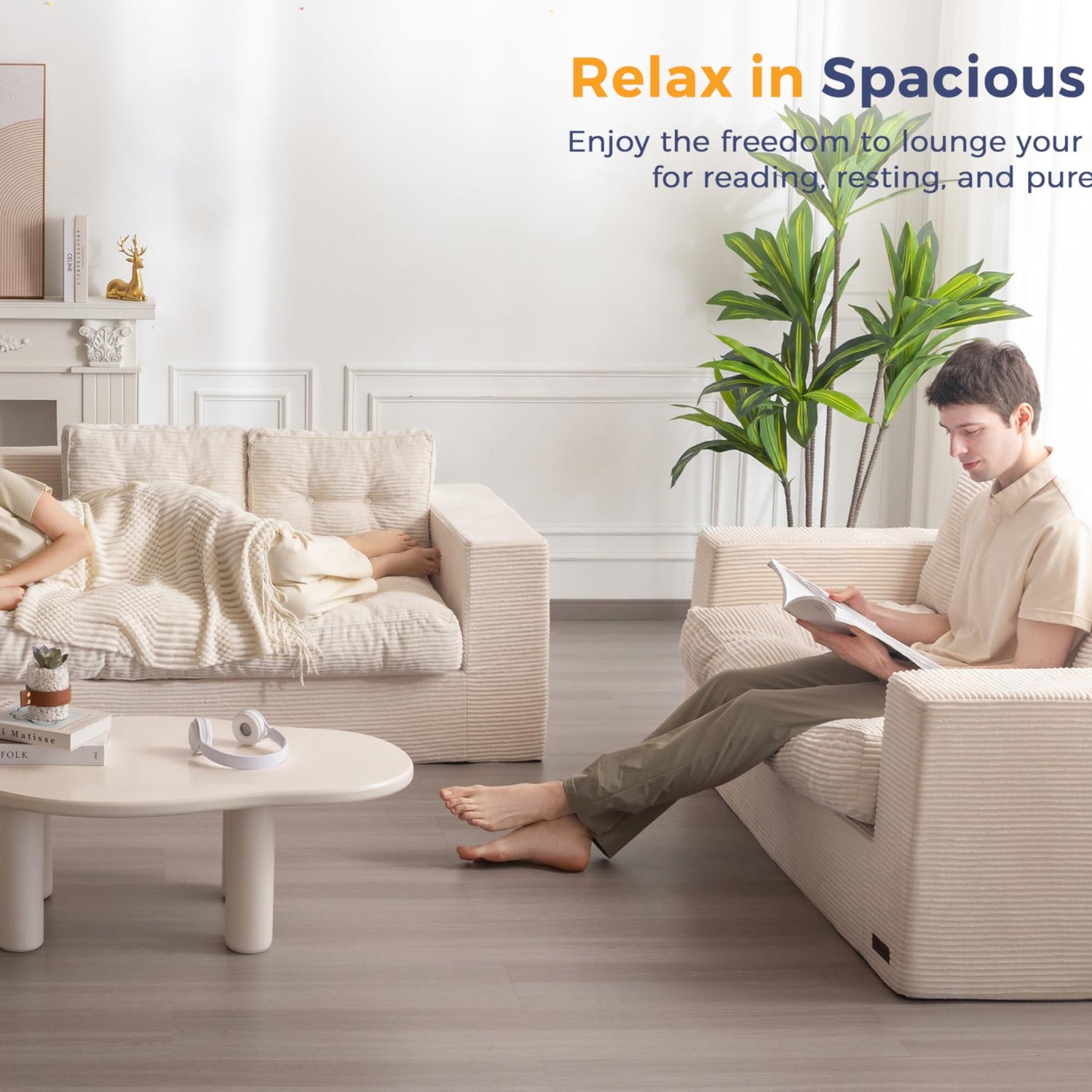 - Textured Corded Fabric: Wrapped in premium corduroy, this sofa couch in a box delivers a soft, skin-friendly feel with stylish ribbed texture. Durable and breathable, it's made to stay plush and beautiful through everyday lounging