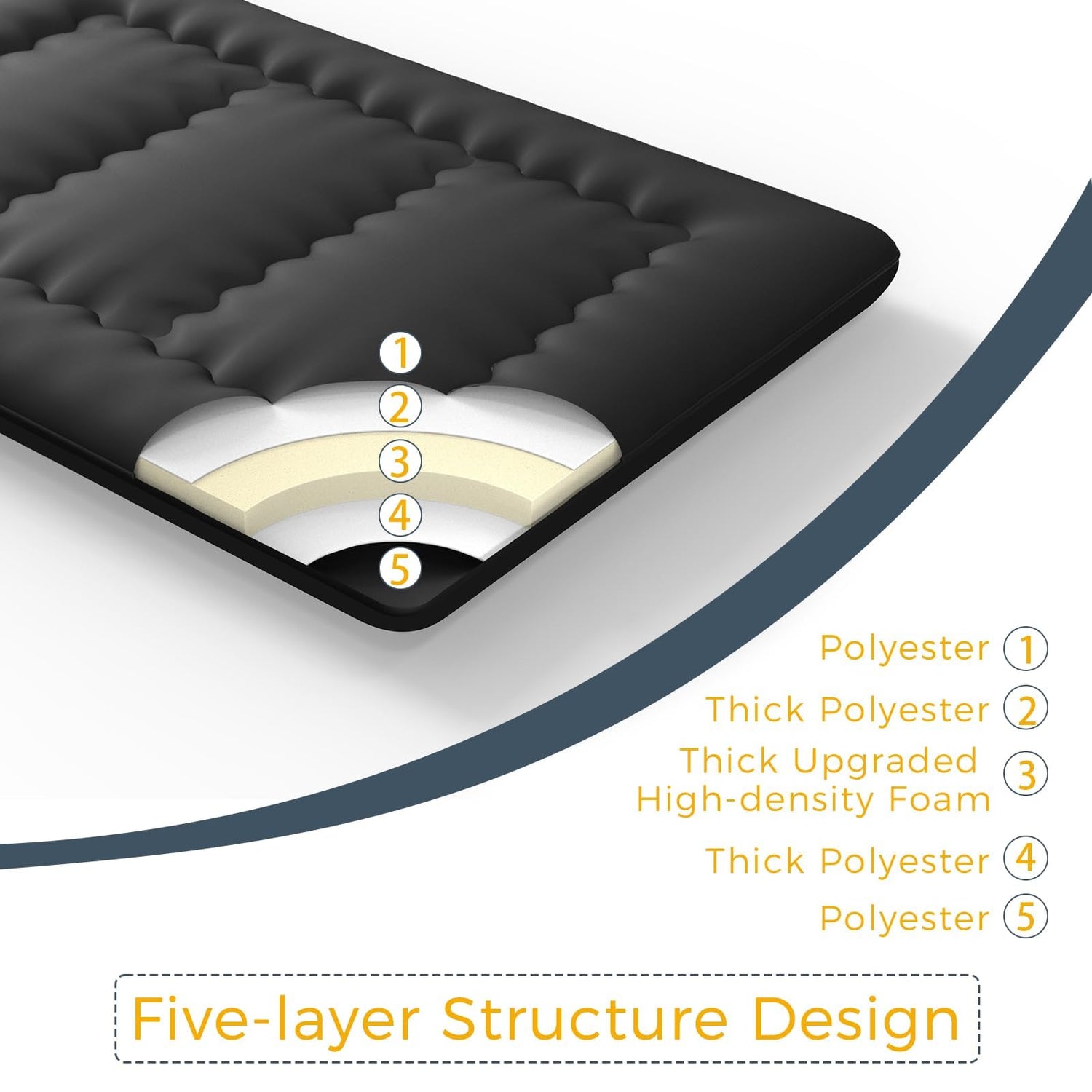 - Upgraded Workmanship: The mattress uses an upgraded technology, the cover is skin friendly polyester. More even filling makes the mattress more sturdy, durable, comfortable and healthy. The filling is thick polyester + thick upgraded high-density base support foam + thick polyester, which will offer a good support when you lying on the mattress