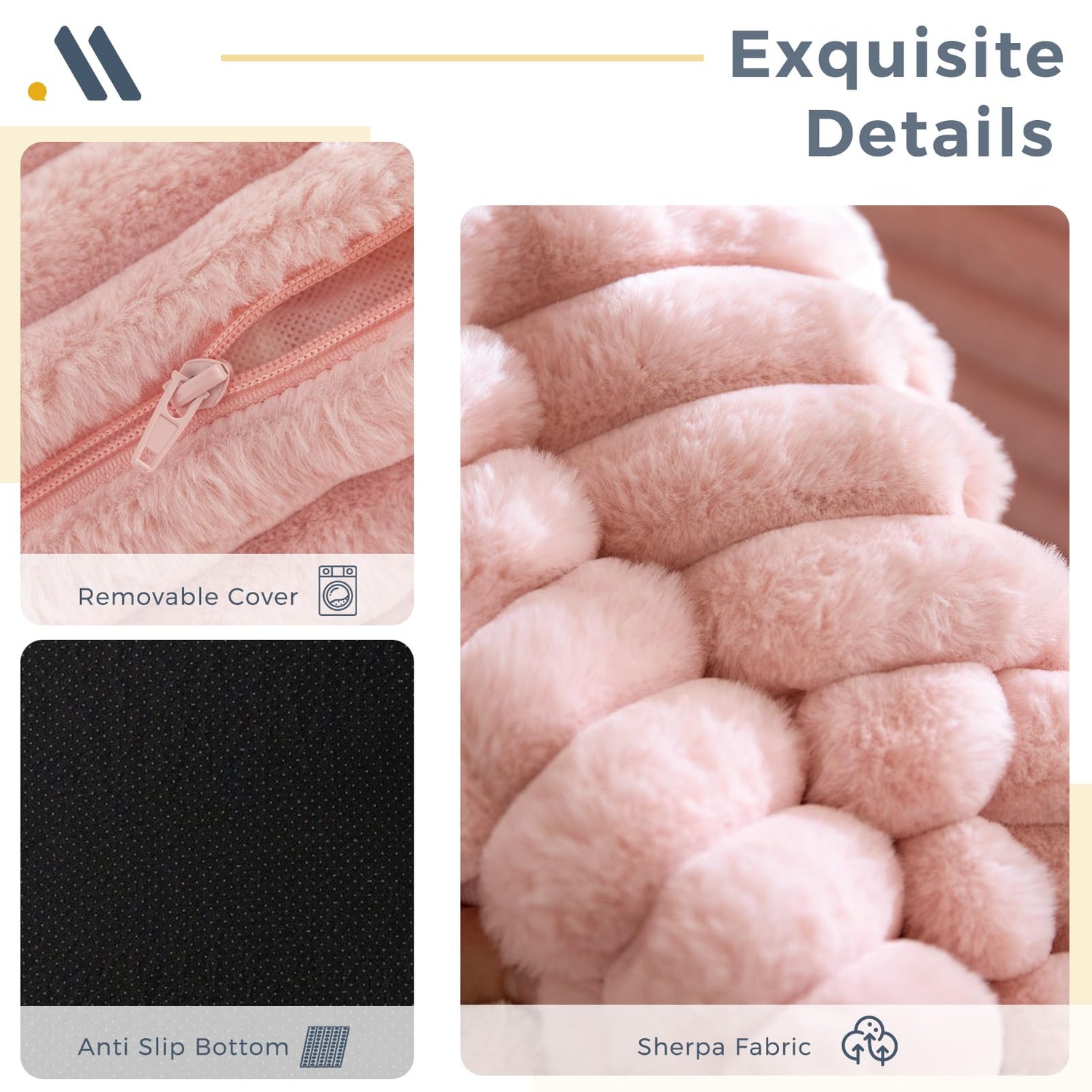 MAXYOYO Bean Bag Chair, Two-Seat Bean Bag Sofa with Pillows and Armrests for Adults, Upholstered Loveseat Floor Sofa Couch Fluffy Chair Bean Bag Couch for Bedroom Living Room, Pink