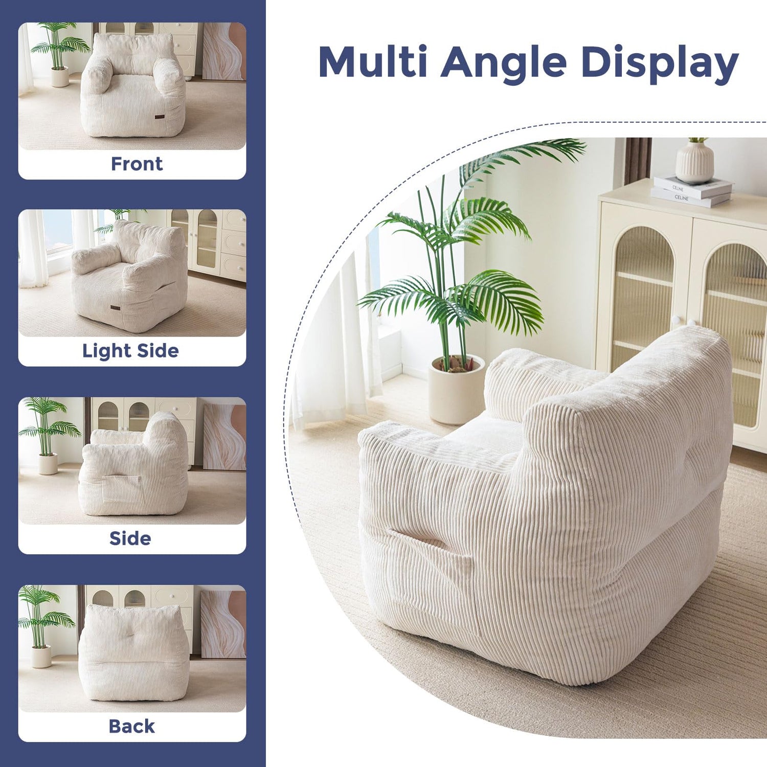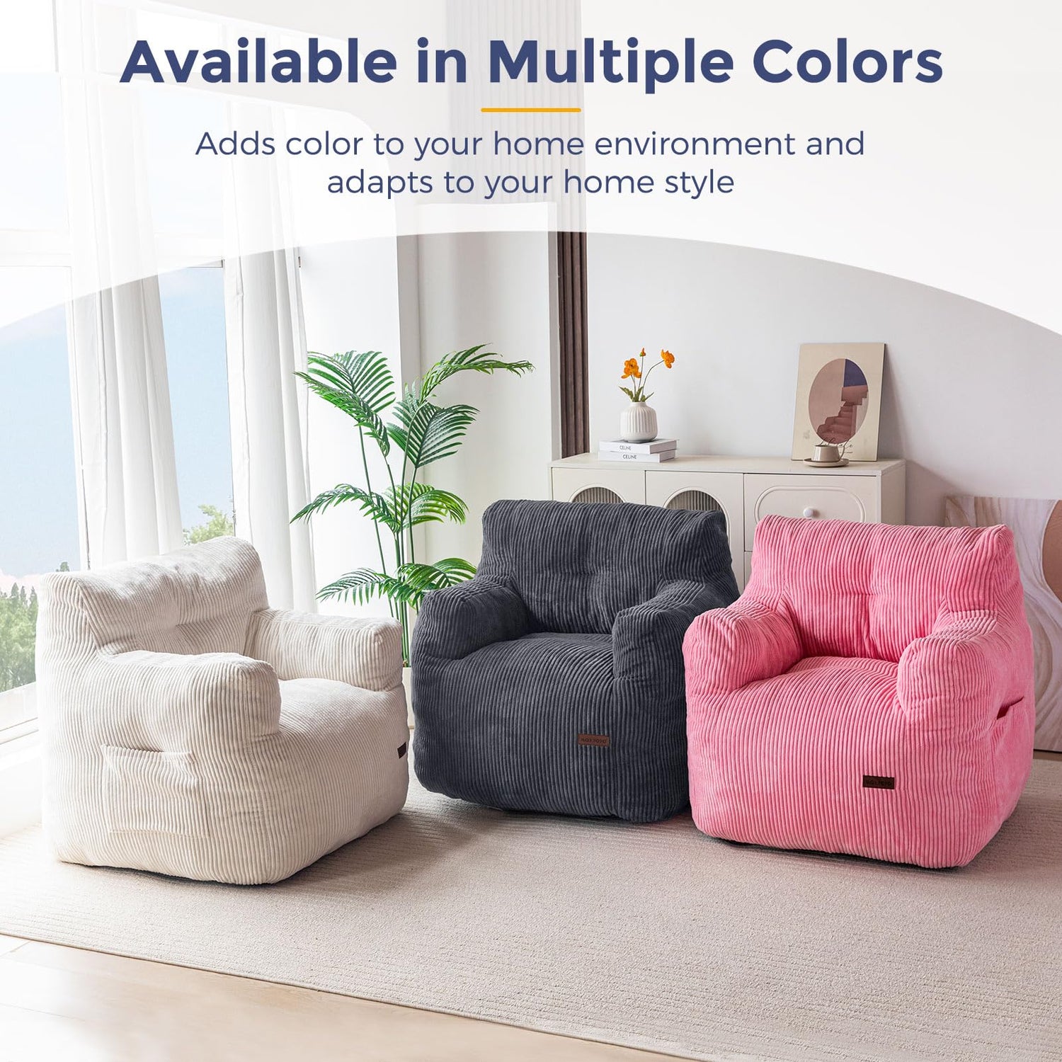 MAXYOYO Corded Bean Bag Chair, Living Room Bean Bag Chair for Adults Kids, Tufted Lazy Couch Lazy Sofa for Living Room, Stuffed with Filler
