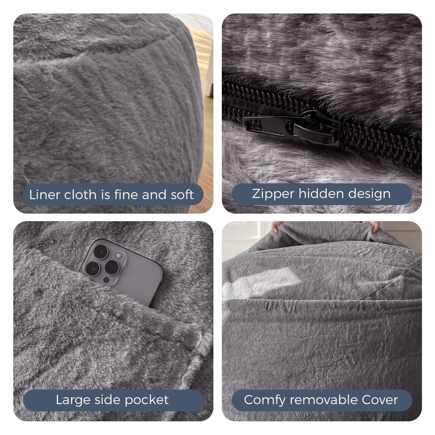 - Thoughtful Details and Multiple Uses: The design of these bean bag bed includes a hidden zipper, it doesn't affect the chair's beautiful appearance. Additionally, a large side pocket is incorporated to conveniently hold mobile phones, tablets, books, and small items. The chair also features a large handle, making it easy to move around and enjoy your personal time in any corner of the house.