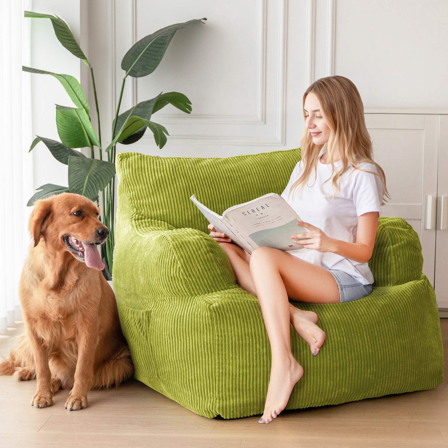 MAXYOYO Giant Bean Bag Chair, Stuffed Bean Bag Couch with Filler Large Living Room Bean Bag Chair for Adults, Big Lazy Sofa Accent Chair with Pocket Floor Chair for Gaming, Reading, Green