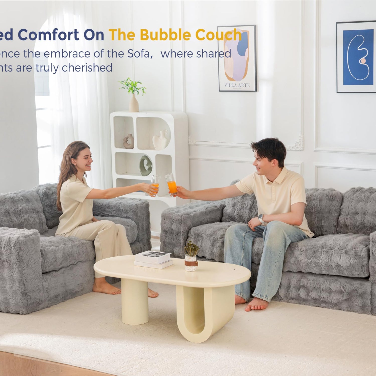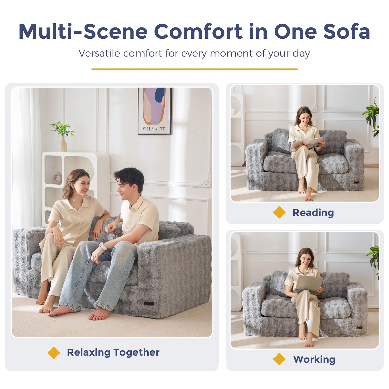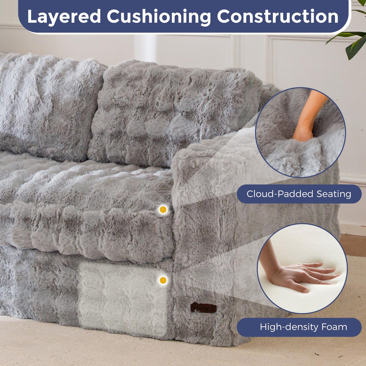 - Ultra-Soft Bubbled Fabric: Upholstered in cozy bubble faux fur, this fluffy sofa couch feels warm, soft, and inviting—ideal for relaxing after a long day