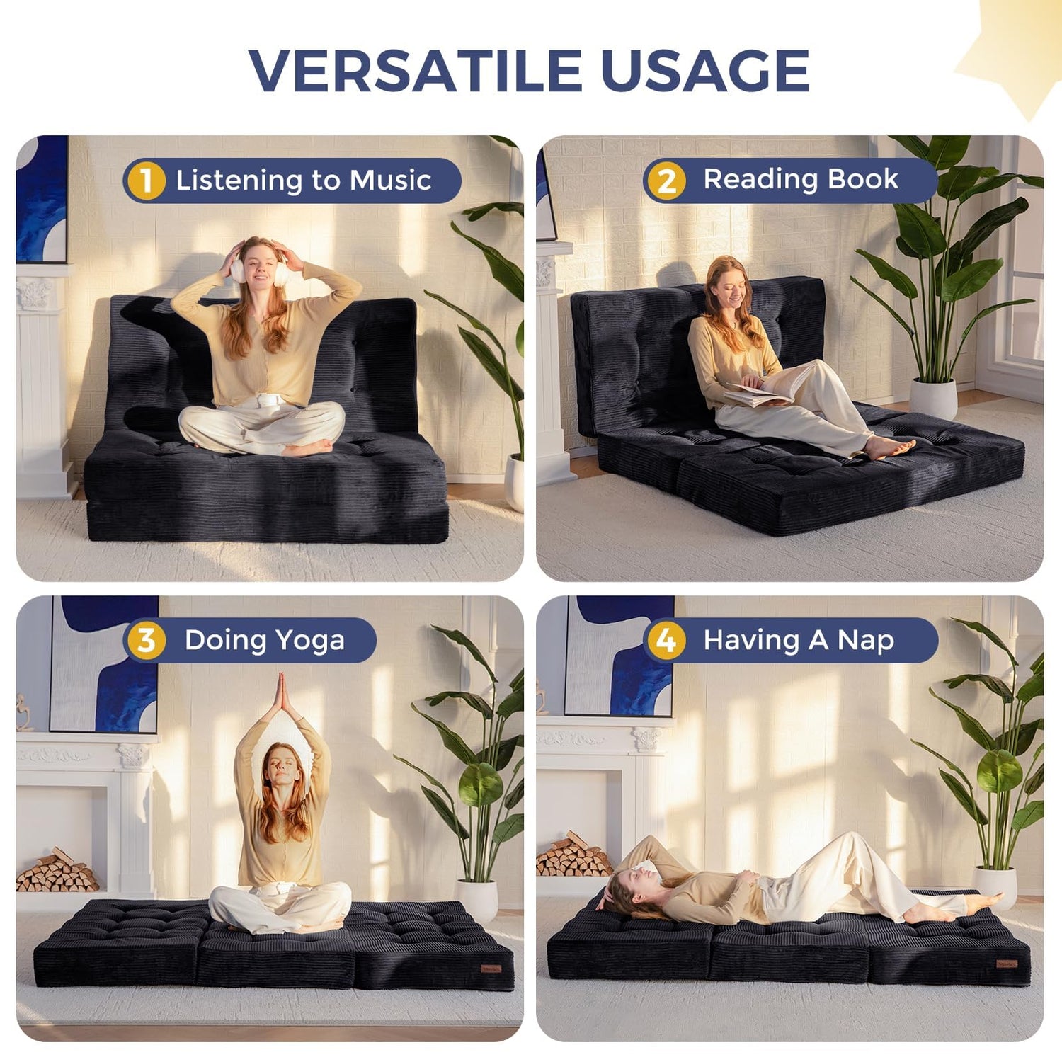 - Tri-Fold Mattress: Our foldable triple-fold mattress can be easily unfolded into a spacious and comfortable seat cushion. When folded, it is compact and takes up little space. Whether it's for indoor lounging, picnics, yoga, or everyday home use, it's effortless to use and allows you to enjoy comfort anytime, anywhere