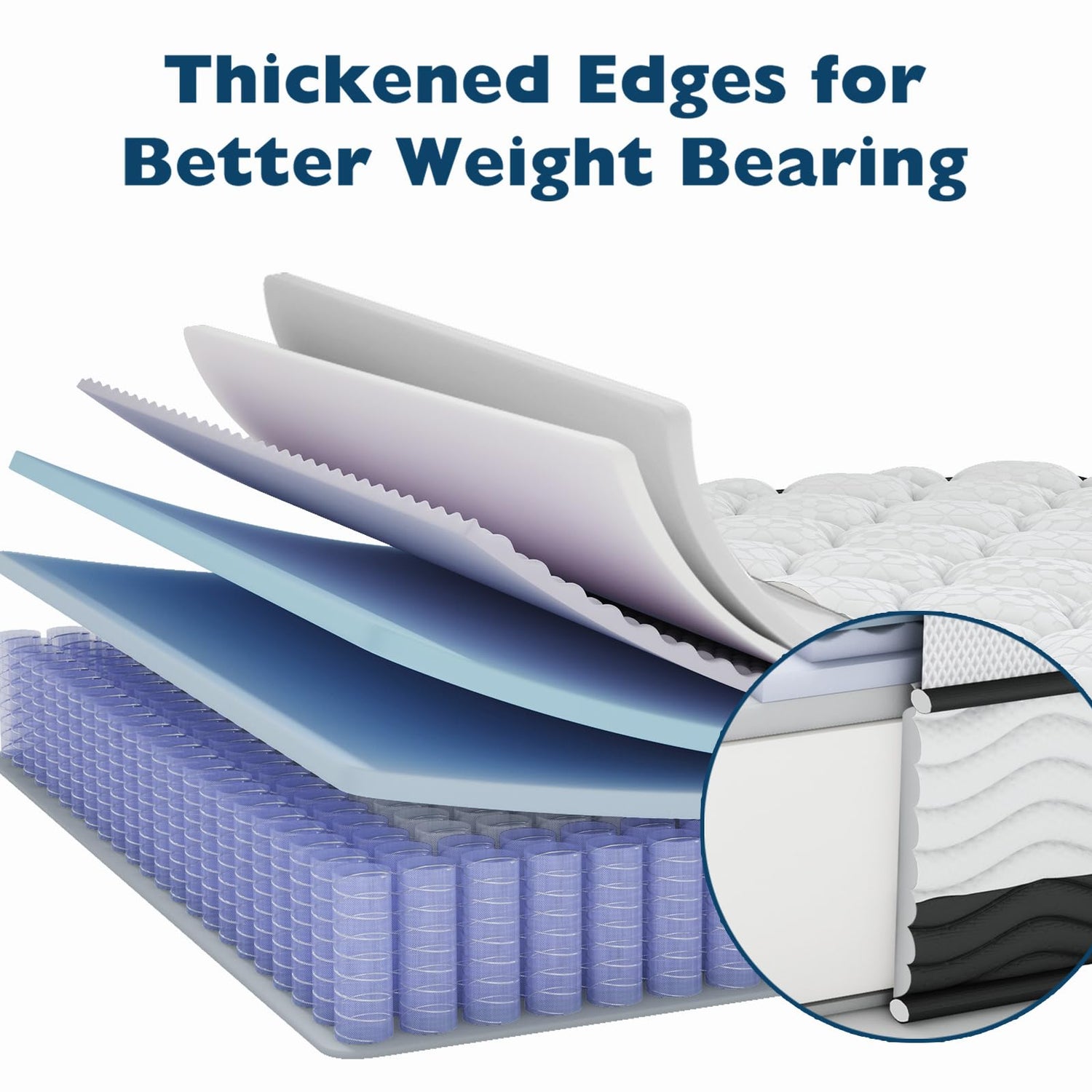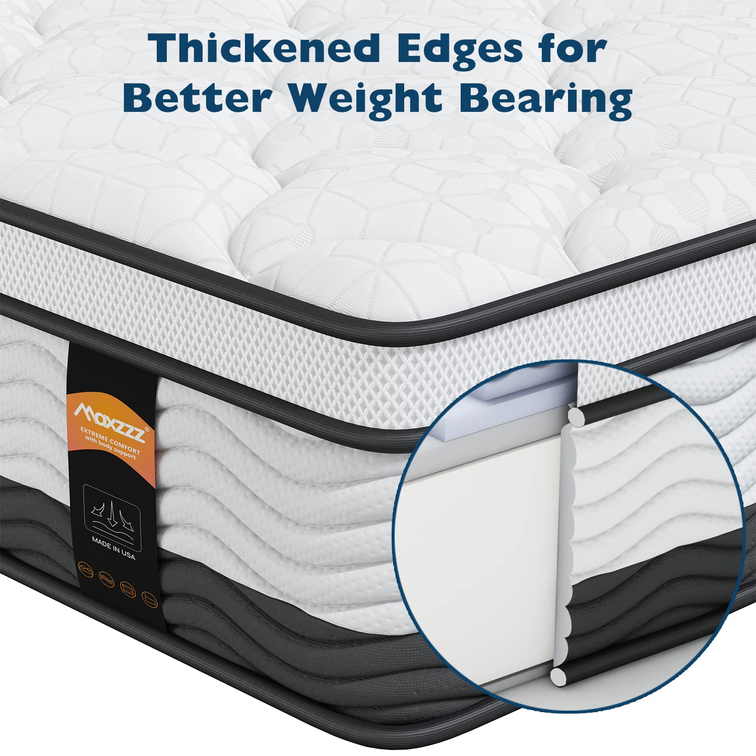 - Enhanced Edge Support: This medium-firm king bed mattress uses thickened padding cotton to enhance edge support and firmness, ensuring your stability when sitting or lying on the edge area, and also helping to extend the life of the mattress, making it friendly to heavy people.
