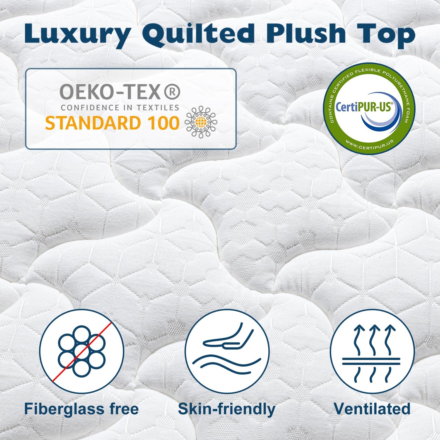 - Breathable & Soft Fabric: With the OEKO-TEX Standard 100 certified cover, you can sleep with confidence on this 14 inch king size mattress, the premium fabric provides the ultimate comfort for your skin and the quilted plush top design gives you the same experience as a luxury hotel mattress.