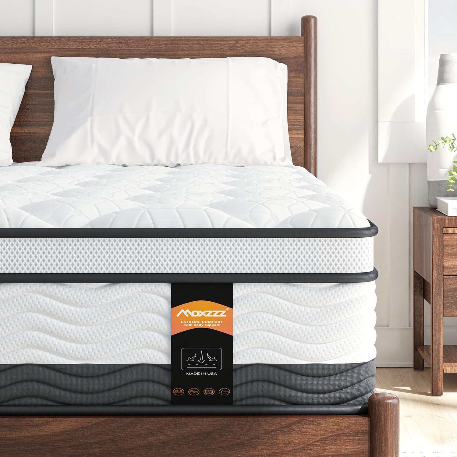 - Bamboo Charcoal & Gel Layer: The CertiPUR-US Certified, bamboo charcoal and gel-infused high-density memory foam layer can let you better release body pressure while helping with temperature regulation when you sleep on this hybrid mattress king.