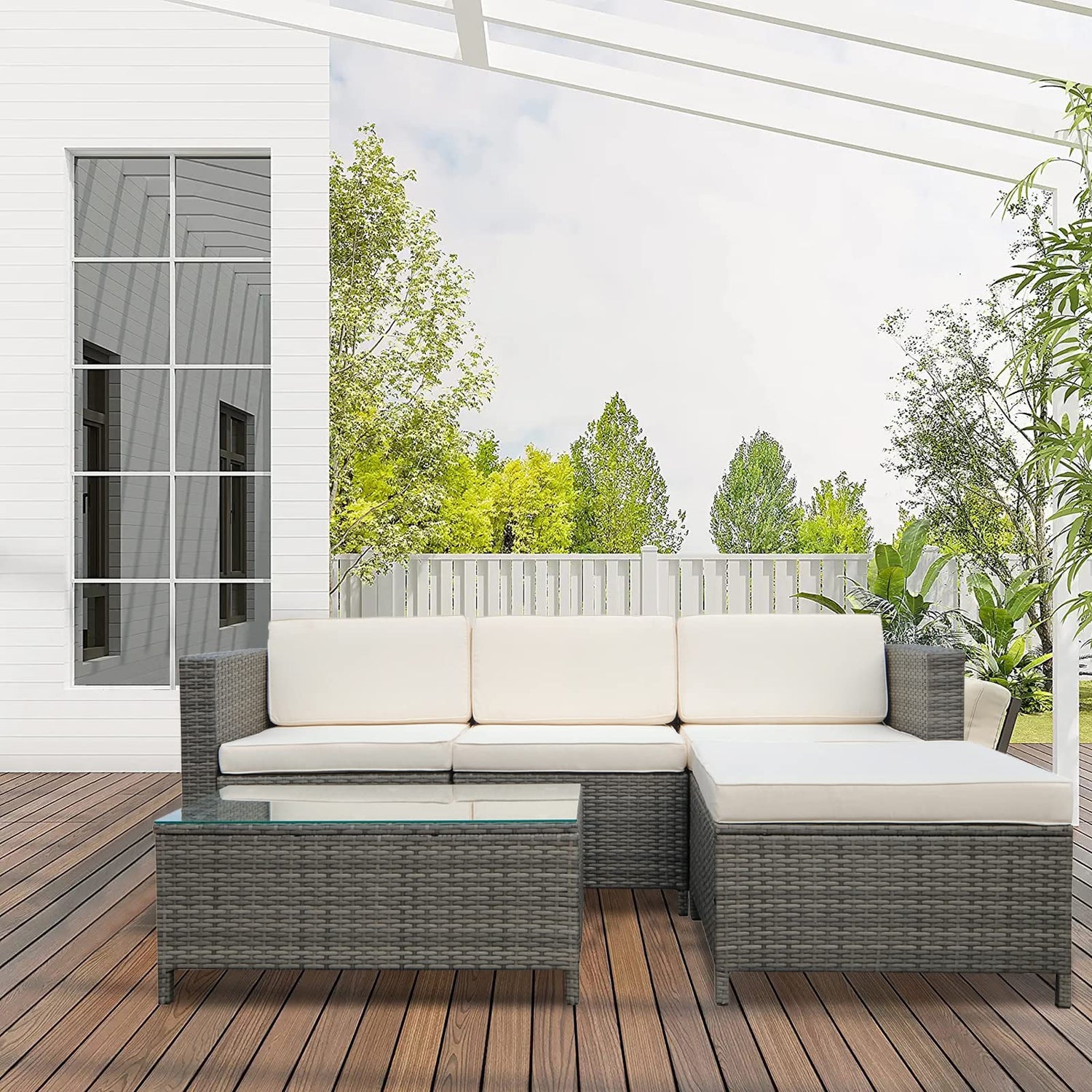 - 【Easy Assembly & Clean】With detailed product instruction, you can assemble the 5 piece wicker outdoor patio furniture set quickly. The zippered cushion covers of the sectional sofa are detachable and washable, and the PE rattan surface is smooth, which offers convenience for you to clean.