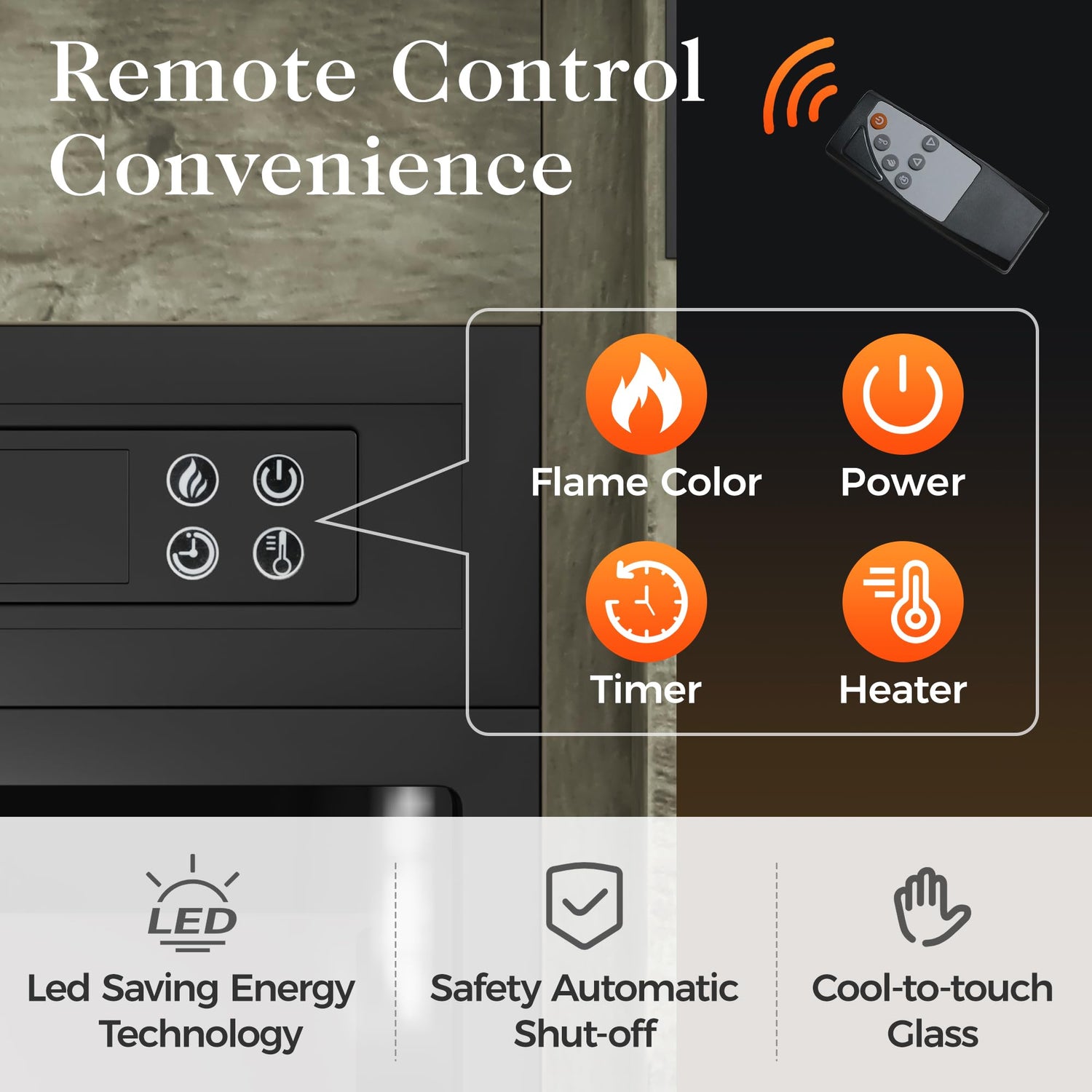 - Effortless Control, Elevated Safety: Operating this tv stand fireplace is as easy as 1-2-3-4 with its intuitive function keys. Prefer remote control? It's got you covered. CSA certification and smart overheating protection ensure your relaxation with complete ease.