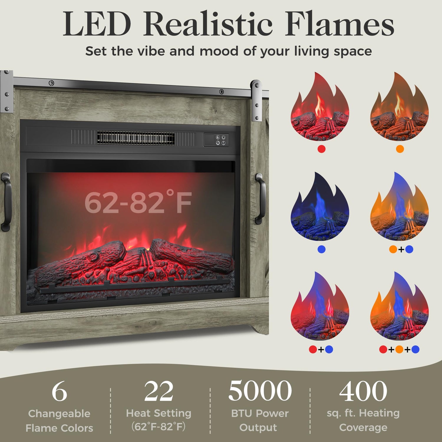 - Why Fireplace or TV Stand When You Can Have Both? : Imagine a cozy evening by the fireplace entertainment center. No mess, no wood chopping—just farmhouse elegance with sliding barn door and authentic wood textures, bathed in the warm flicker of firelight.