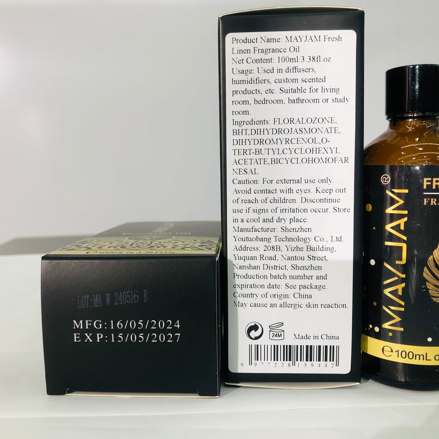 MAYJAM 100ML/3.38FL.OZ Fresh Linen Fragrance Oils with Glass Dropper, Essential Oils for Diffusers for Home, Long Lasting Scented Oils for Diffusers Soap Candle Making