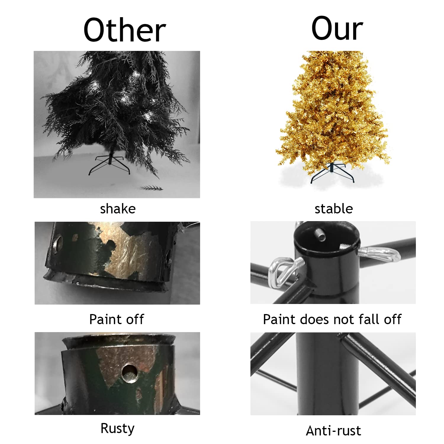 Details: Fits diameter center poles: 3.1cm/1.25" (Please check the tree Pole diameter of the Christmas tree)