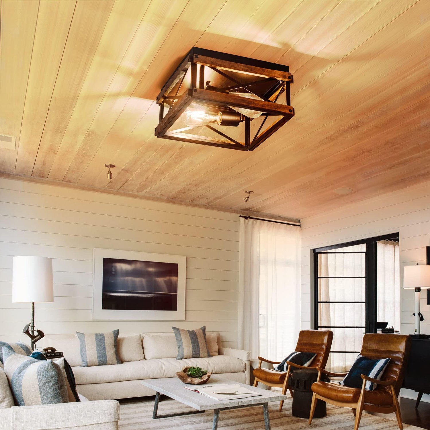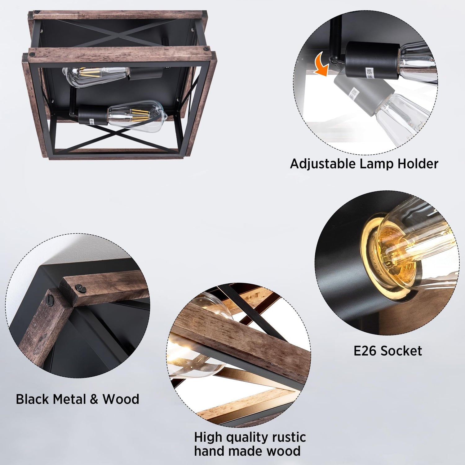 - Farmhouse Vintage Style: This square rustic kitchen light fixtures is made of natural wood and rust-proof metal frame with wood grain finish creating a rustic vintage house style. The rustproof treatment of the lamp body and the ceramic design of the lamp opening make this fixture more resistant