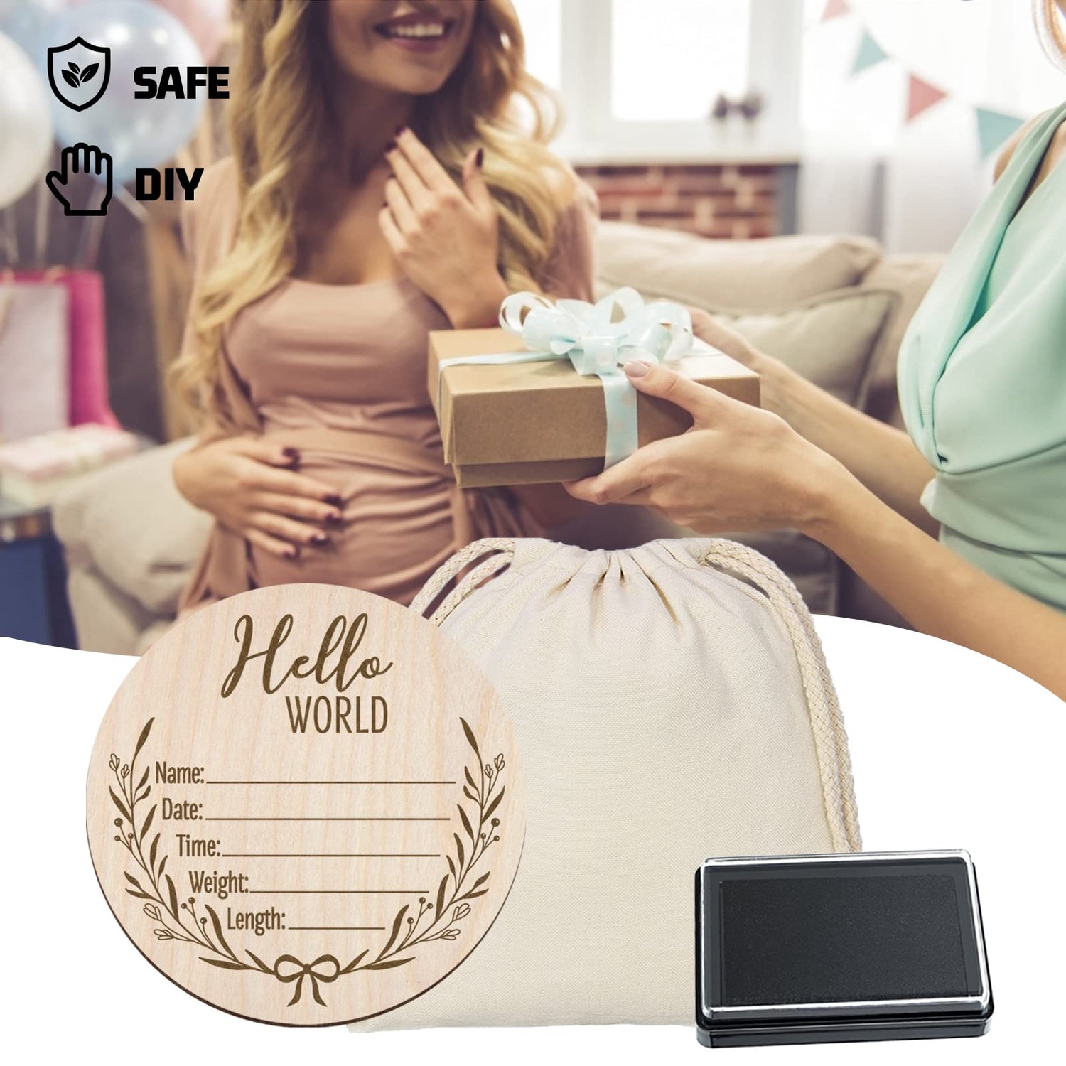 - Creative design-Our wooden baby birth announcements are laser engraved, record your baby's first handprint or footprint on the front, and write your baby's birth brush statistics on the wood using any ordinary black or fine dot pen on the back, record your baby's name, birth Date, time of birth, birth weight, birth length to make it unique and meaningful. Hope your baby thrives in a loving environment.