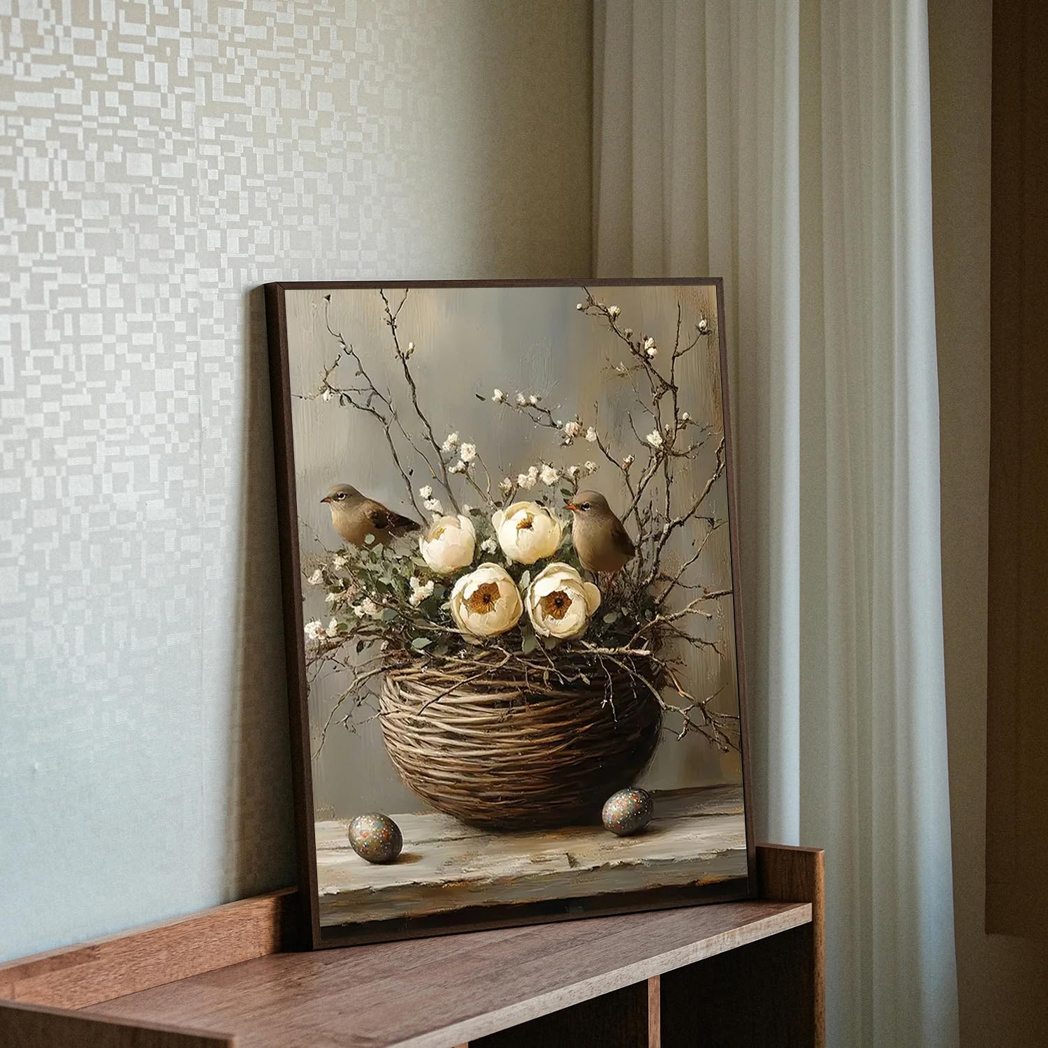 MBNTJHT Bird Paint by Numbers Kit for Adults,Birds Flowers Paint by Number Kits for Adults Beginners,Unframed Flower Basket Digital Oil Painting Crafts for Wall Decor Gifts 16X20 Inch.