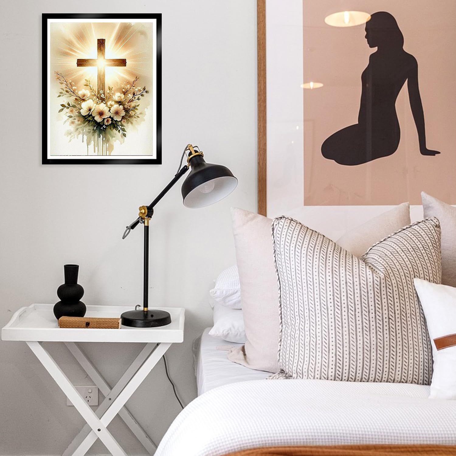 MBNTJHT Cross Paint by Numbers Kit for Adults Beginners,Easy Flowers and Christ Cross Paint by Number Kits on Canvas for Adults,DIY Acrylic Painting Art Kits for Home Wall Decor 16X20 Inch.