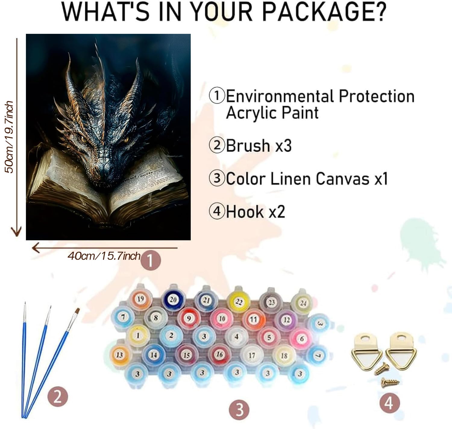 - FULL KITS:This paint by numbers kit includes a 16x20-inch pre-printed canvas, a set of colorful acrylics, 3 brushes, and an easy-to-follow instruction sheet.