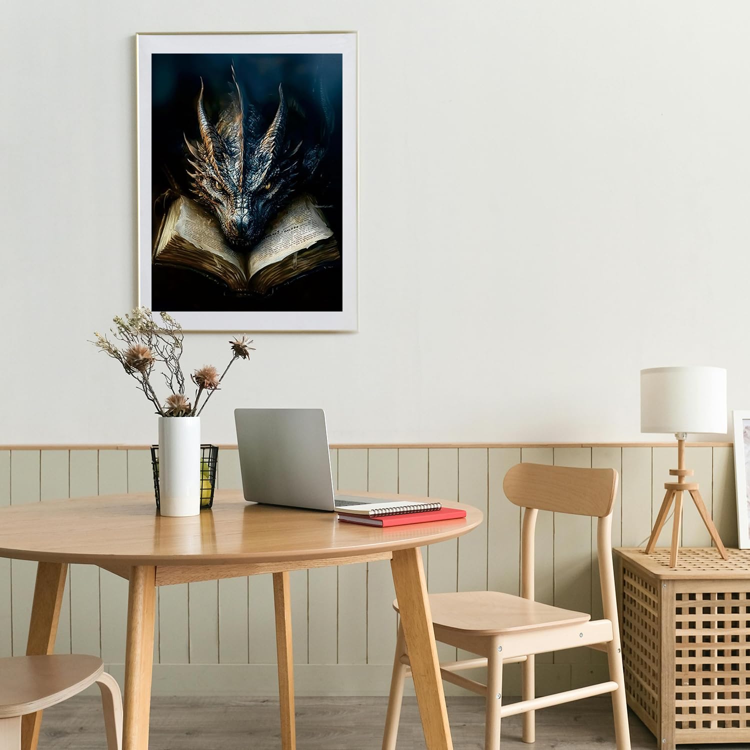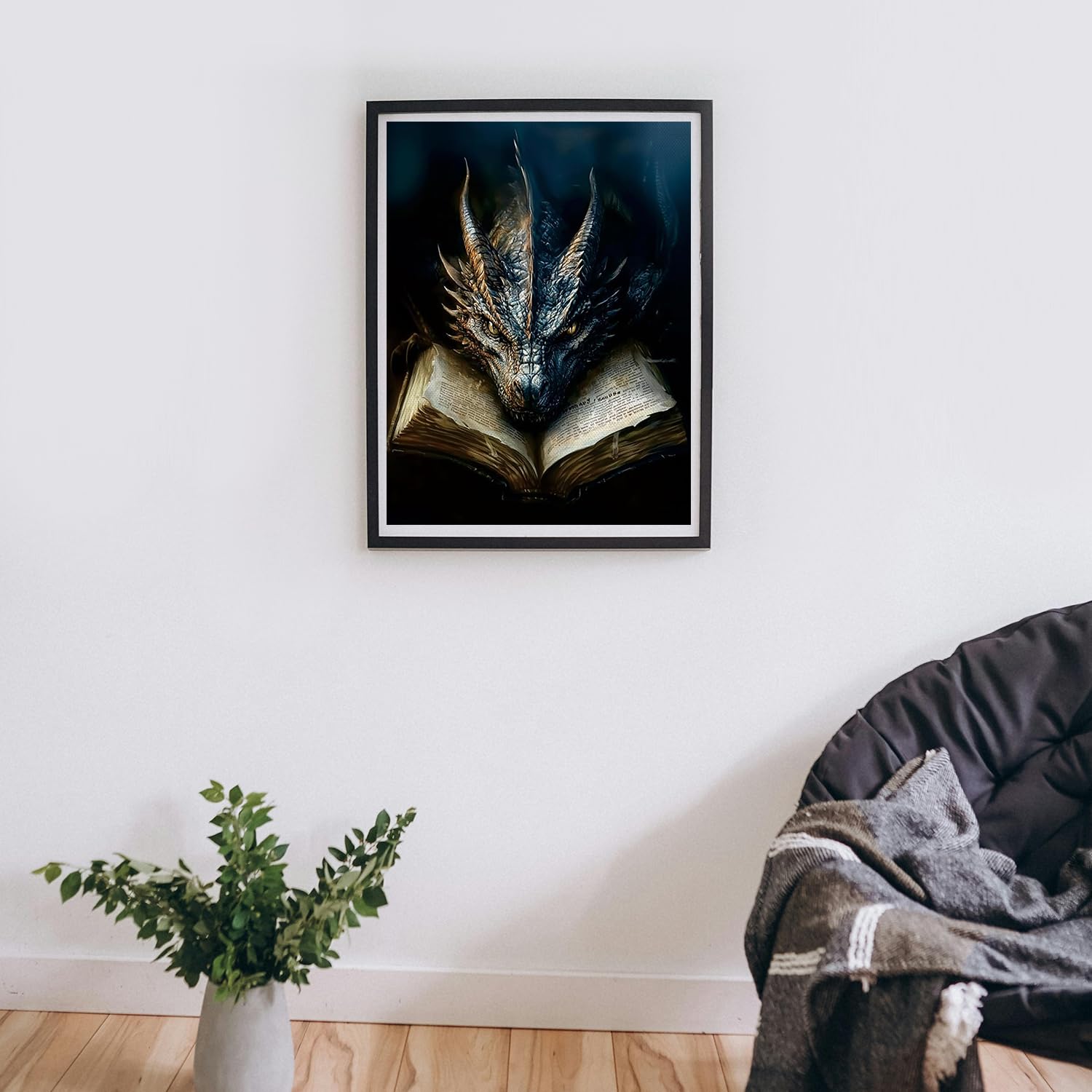 MBNTJHT Dragon Paint by Numbers Kit for Adults,Black Dragon and Book Paint by Number Kits with Brushes for Adults Beginner,DIY Unframed Oil Painting Kits for Home Wall Decor 16x20 Inch.