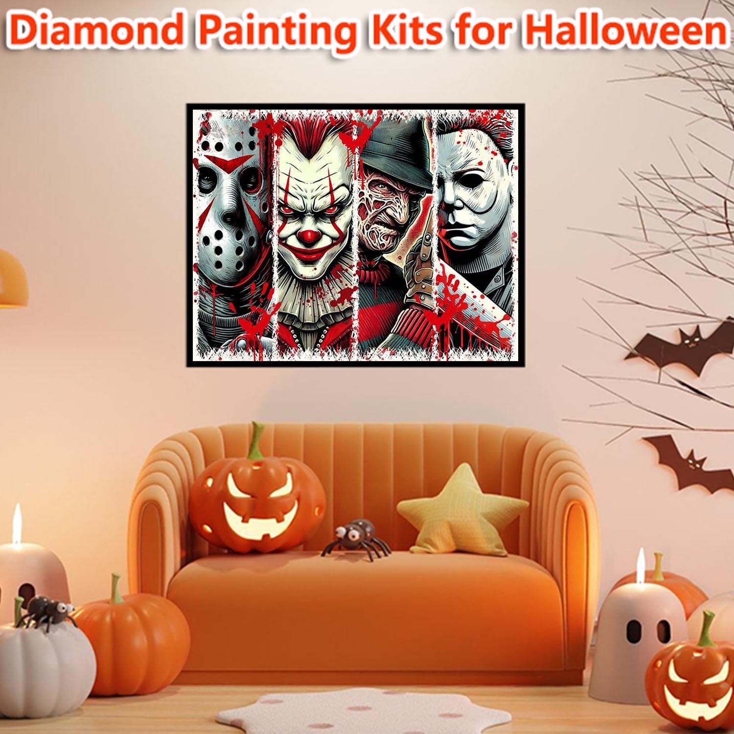MBNTJHT Halloween Diamond Painting Kits for Adults Beginners,5D Full Round Drill Horror Movie Diamond Art Kits for Adults,DIY Gem Art Painting and Crafts for Holiday Gifts 12x16 Inch.
