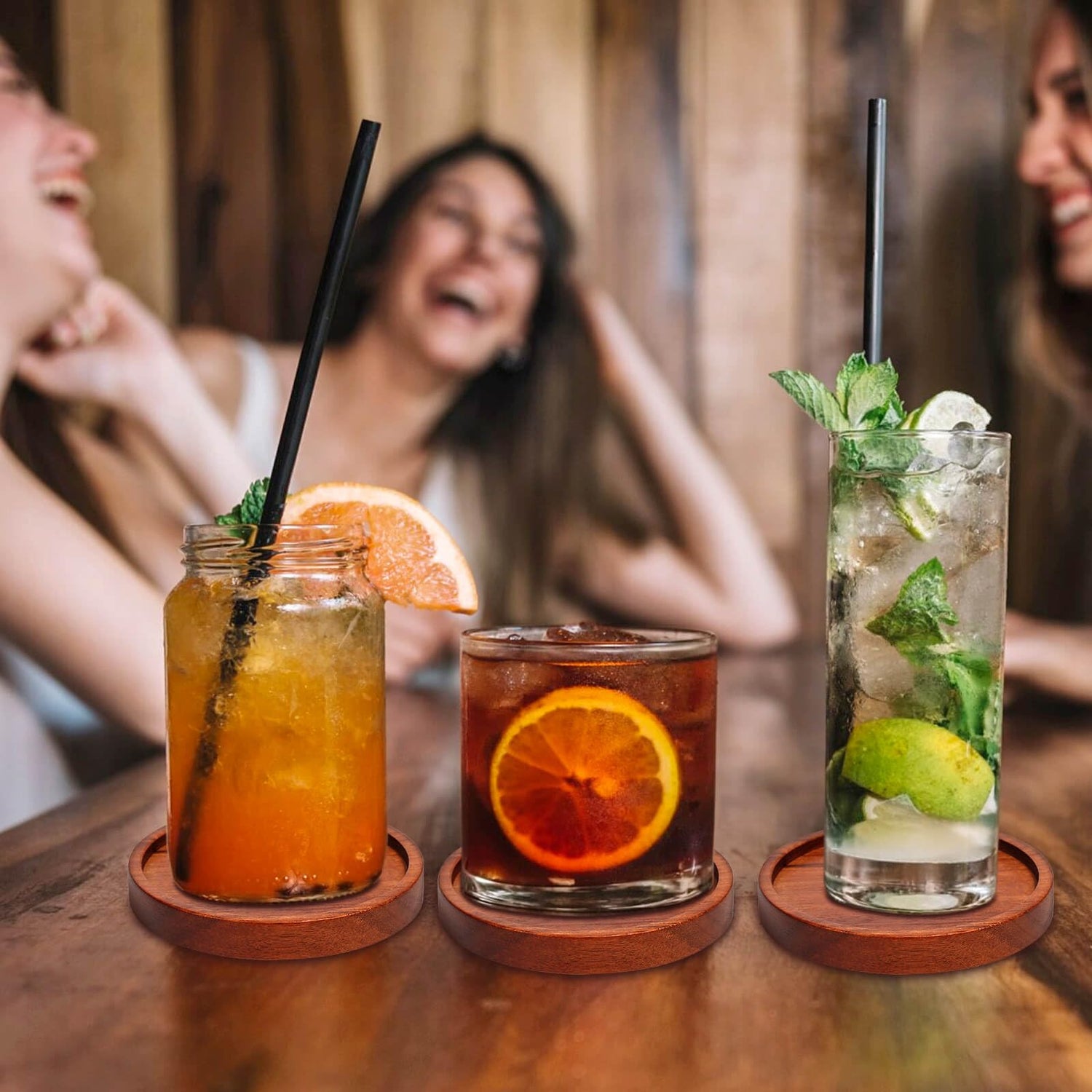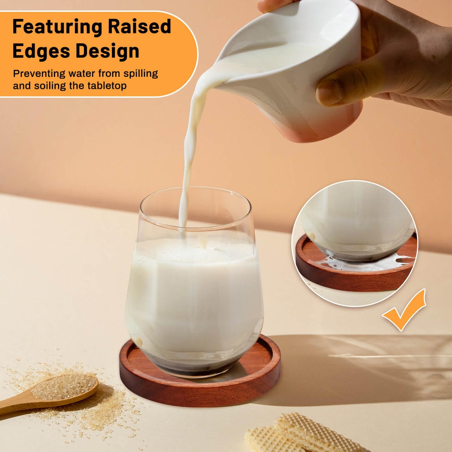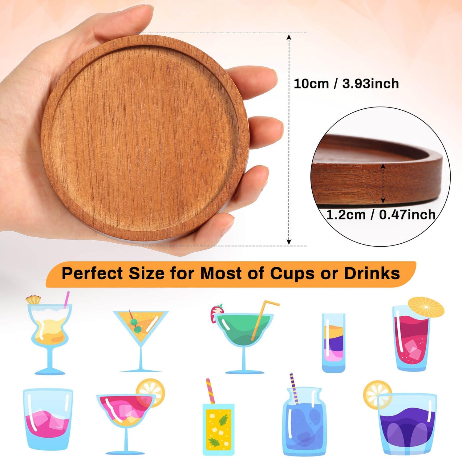 - Reassuring Quality: These natural wood coasters are made of solid acacia wood, which are strong and durable. Each coaster is fitted with soft non-slip mats at the bottom, a delicate design that prevents sliding and protects the table top.