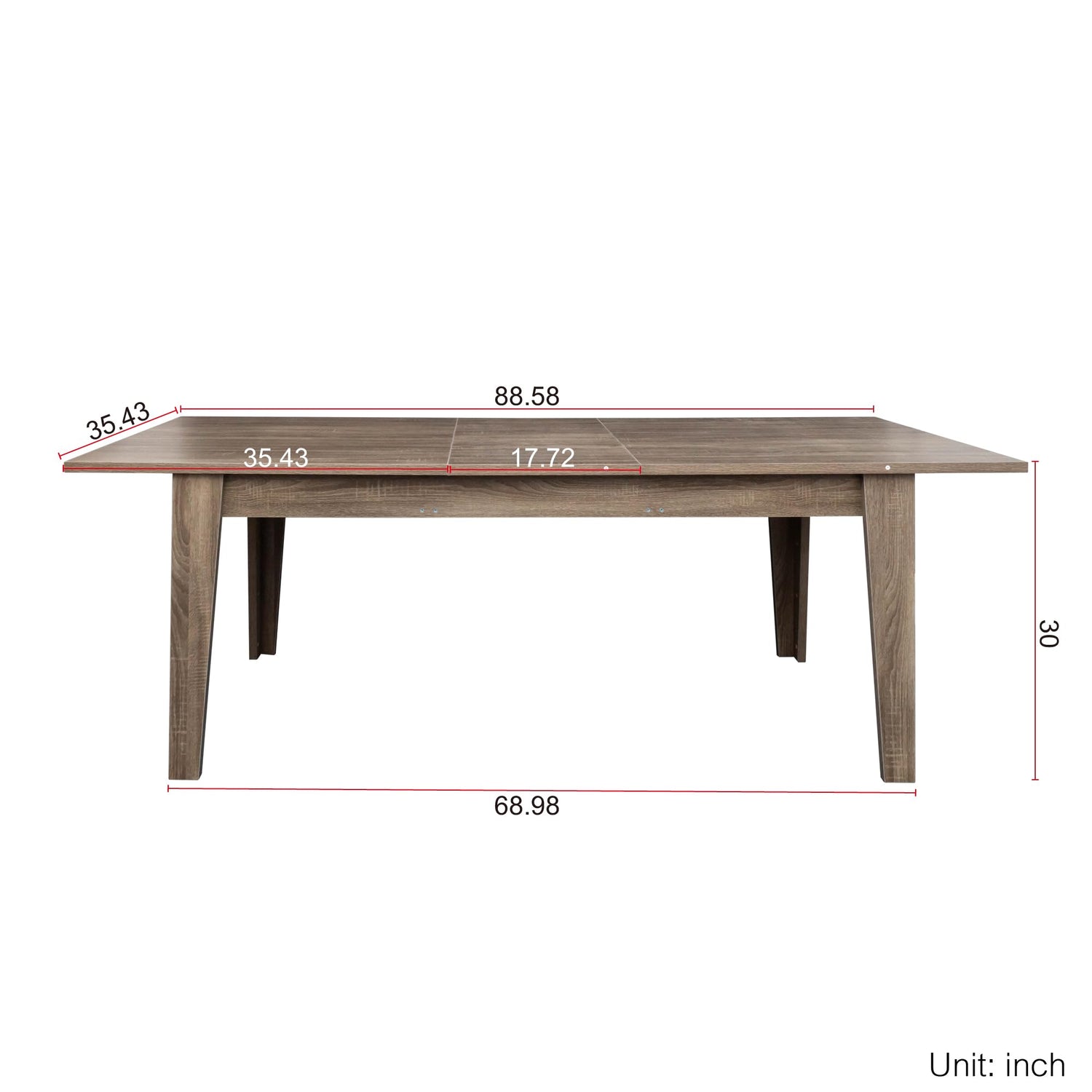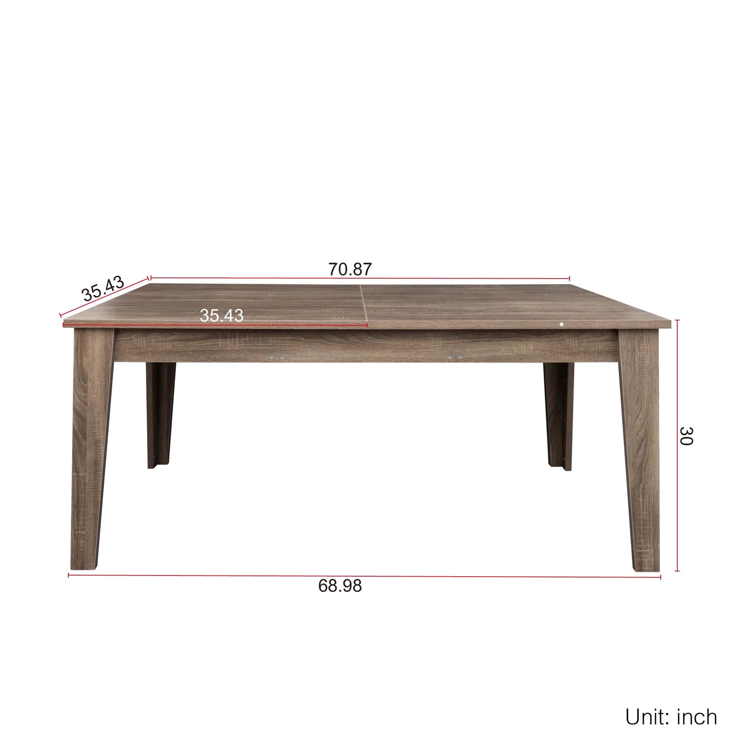 - 【Two Extension Leaves】It is quickly and easily extendable thanks to the smooth extension mechanism. Before extension, The dining table measures 70.87"L x 35.43"W x 30"H. The dining table extends by assembling separate extension leaves on both sides of the table, the length can reach 106.3 inch.
