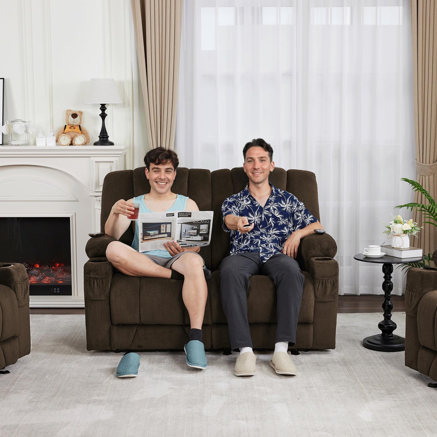 MCombo 57.8" Zero Gravity Power Loveseat Recliner with Heat and Vibration Massage, Reclining Loveseat Sofa with USB Ports, Cup Holders for Living Room, Fabric 6035SET (Brown)