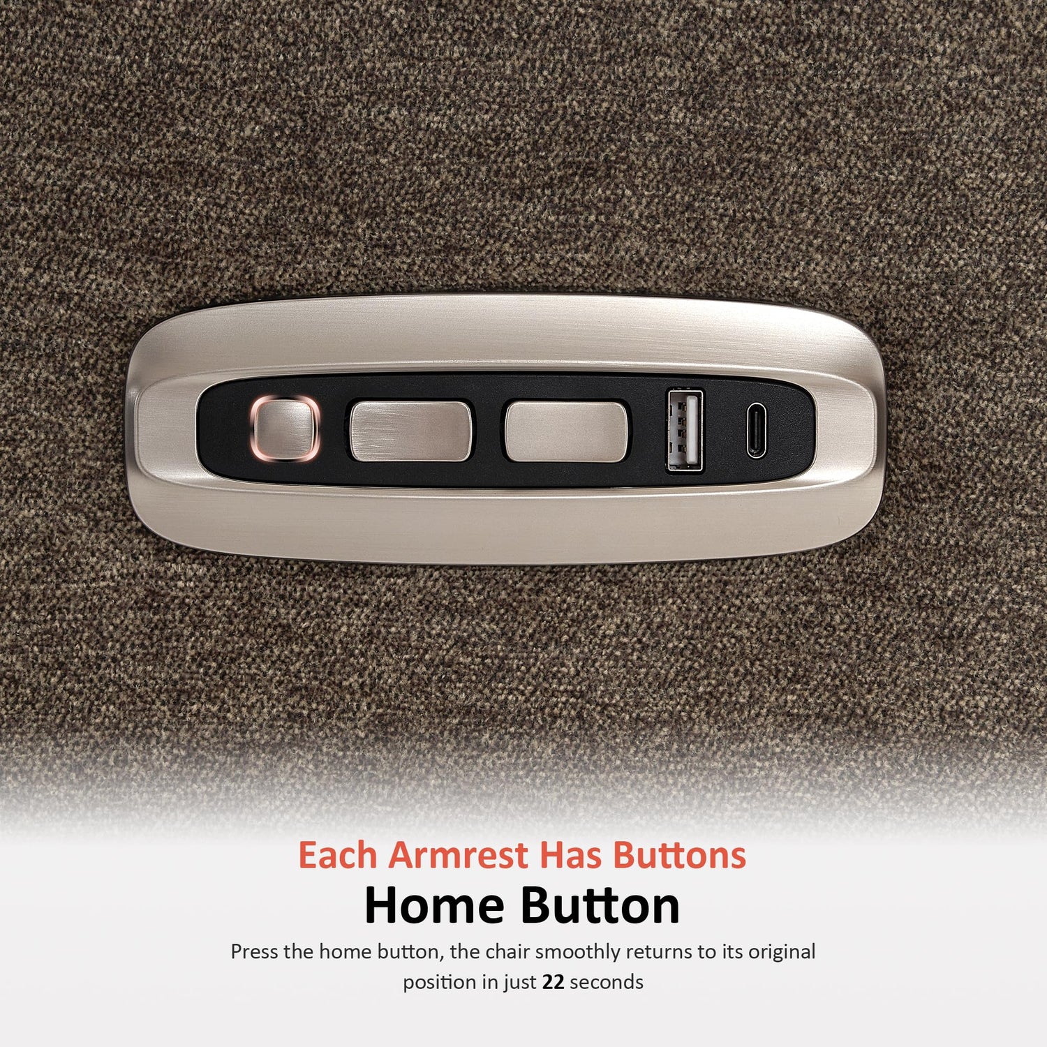 - User-Friendly Controller. Press the home button, and the chair returns to the upright position from any position in max 22 seconds. The dual USB & Type C charge ports on two armrests mean that any phone or pad is applicable