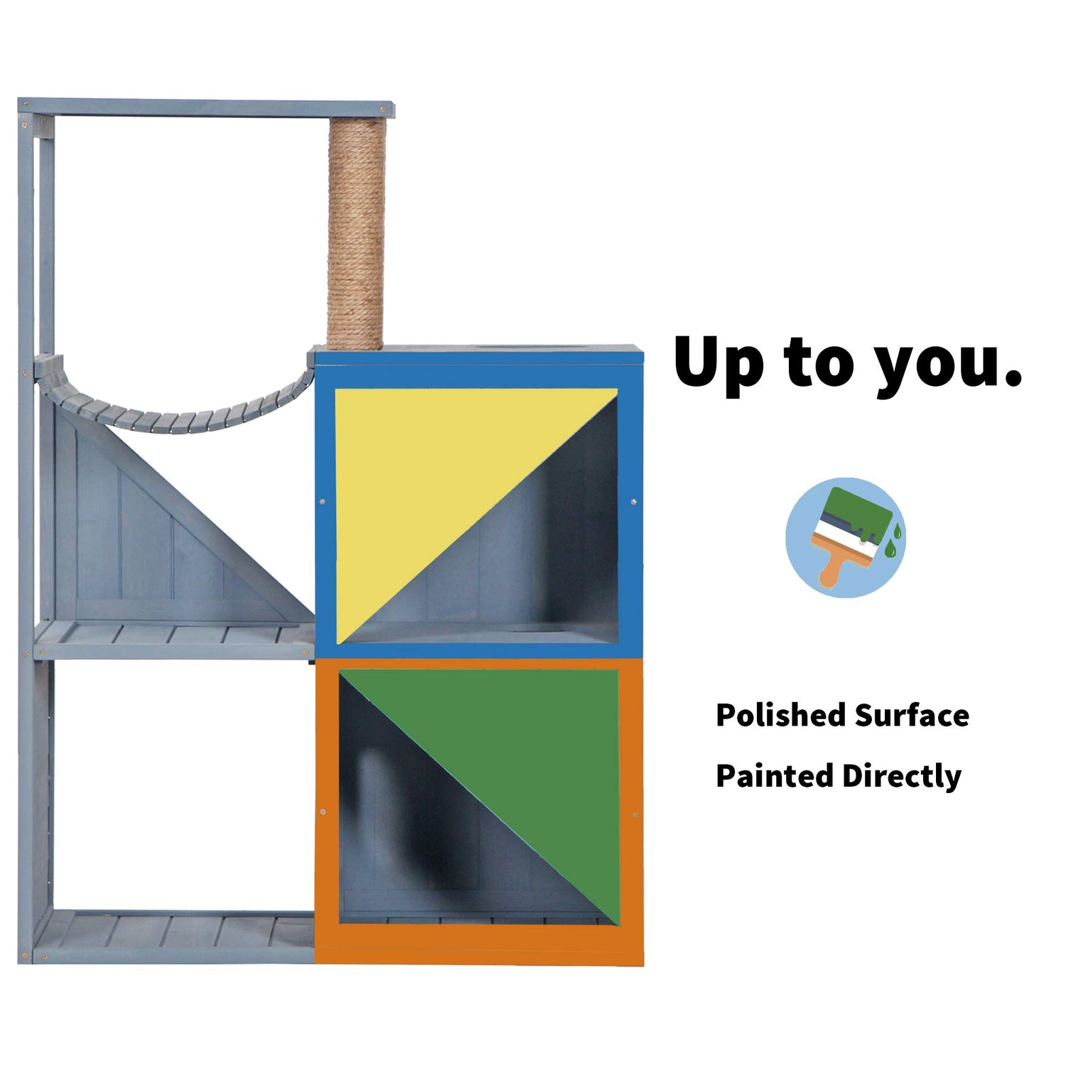 - Multifunctional Design Cat House: According to the cat’s playful nature, we designed a bridge hammock and multiple open exits in the three-story cat house. Considering that cats like to sleep, we designed a concealed sleeping area at the cat condo bottom to allow the cat to sleep at ease.