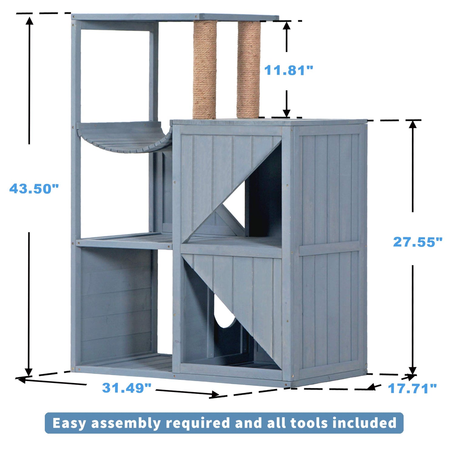 - Easy Assembly Required and All Tools Included: This Mcombo wooden cat house needs a easy installation, we are equipped with tools and instructions to help you complete it. (Overall Dimension: 31.5” x 17.7” x 43.5” ) Number of box: 1