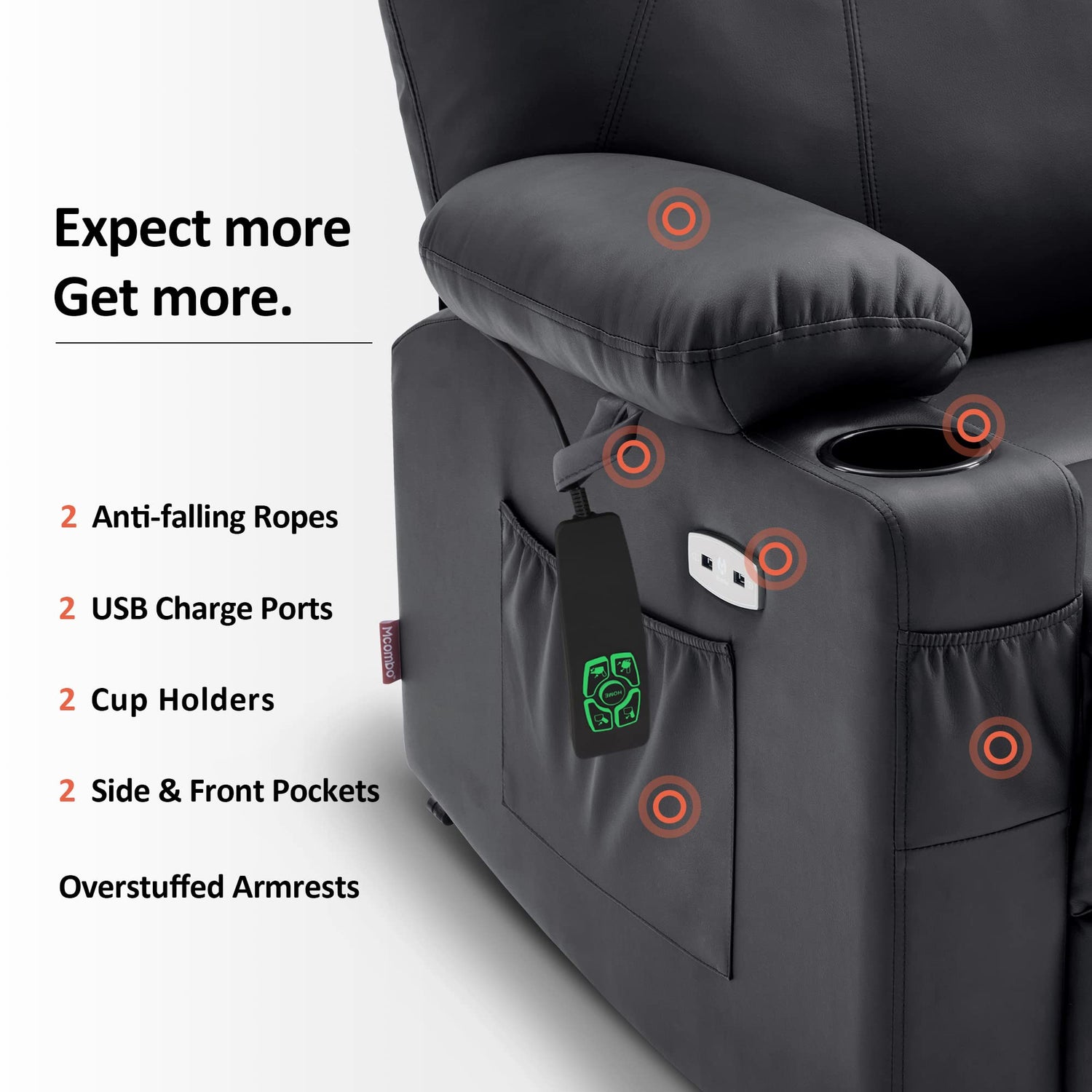 - Why USB Ports & Cup Holders? More Convenient: The dual USB ports and cup holders in the recliner will allow you to put your drink on the cup holder and charge your mobile devices all while enjoying a movie or enjoying your favorite apps