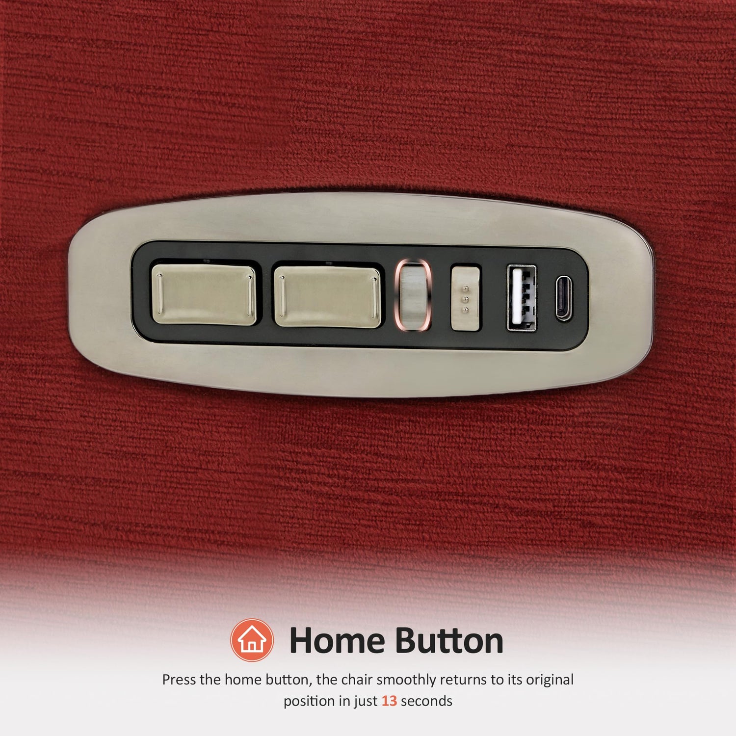 - ONE-TOUCH RESET & LED LIGHTING. Press the home button, and the chair smoothly returns to its original position in just 13 seconds. The dual USB &Type C ports on the armrest support any phone or pad, and LED lighting for added relaxation