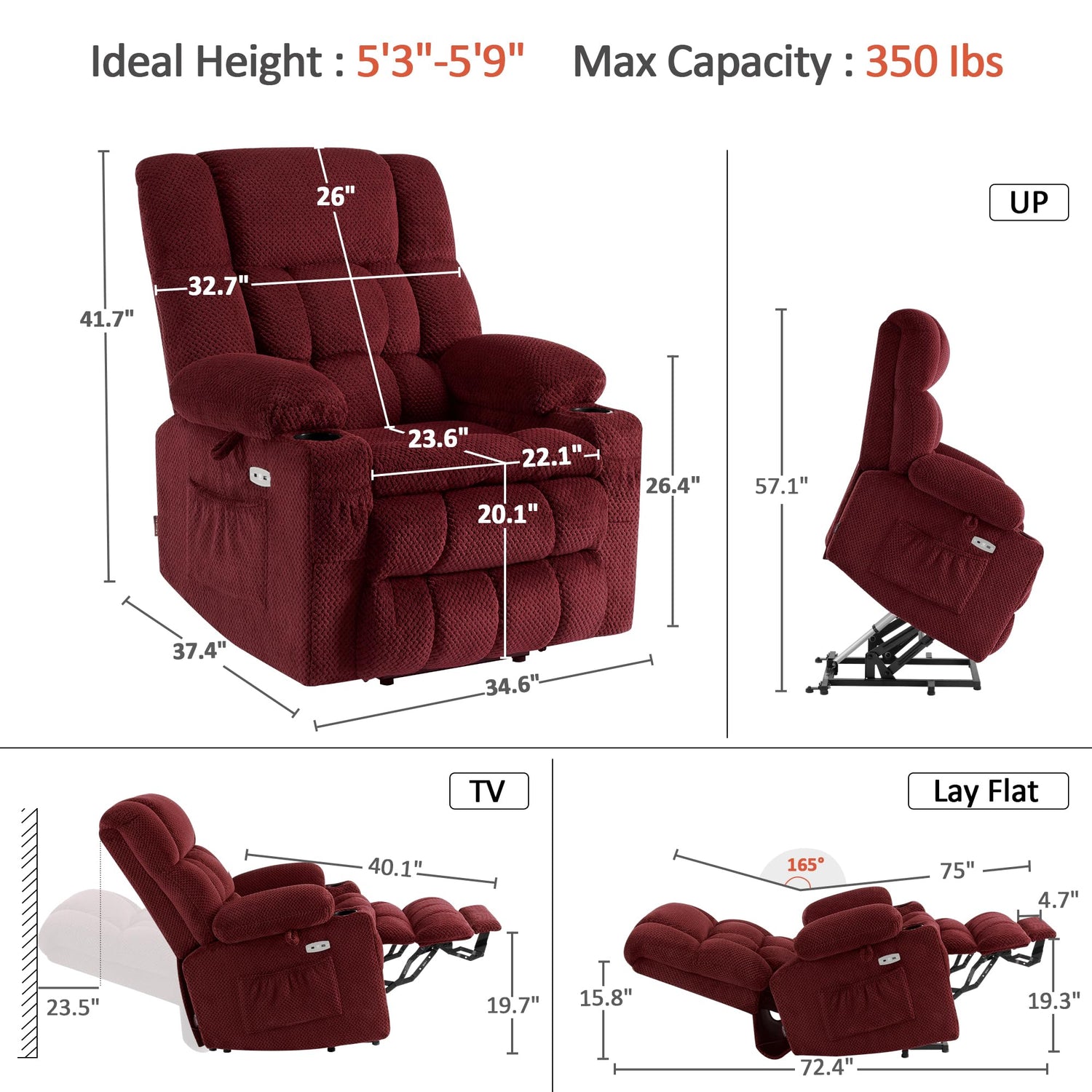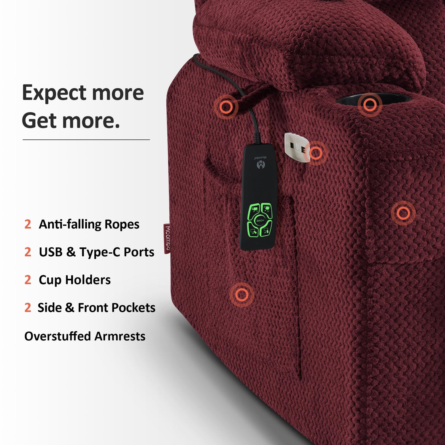 MCombo Dual Motor Power Lift Recliner Chair with Massage and Heat for Elderly People, Infinite Position, USB Ports, Cup Holders, Fabric 7890 (Medium, Burgundy)