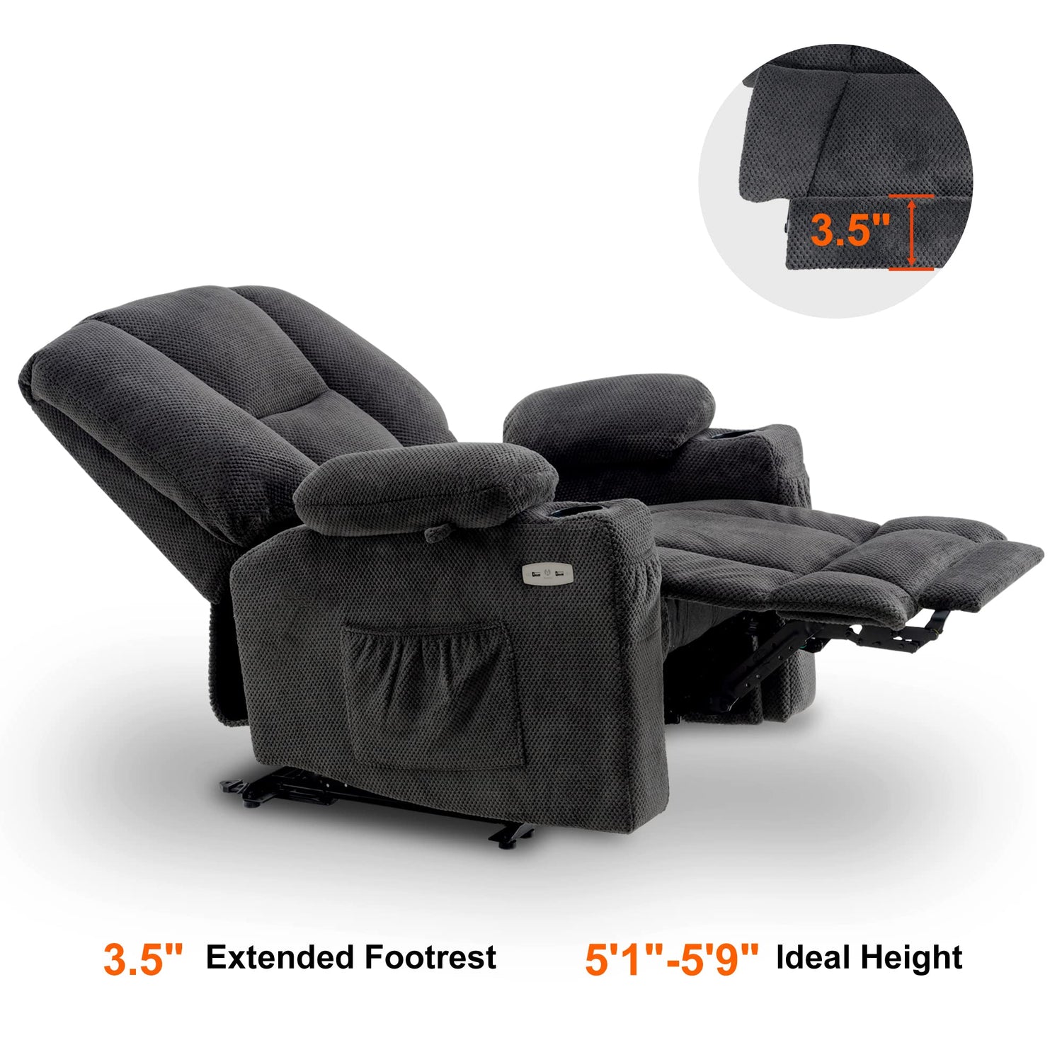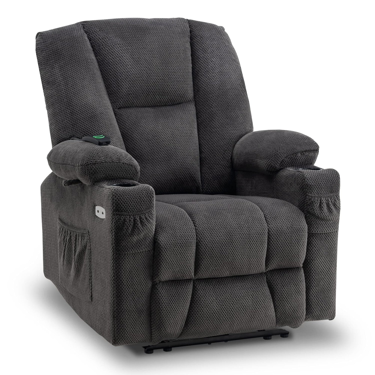 MCombo Fabric Electric Power Recliner Chair with Heat and Vibration, Cup Holders, USB Charge Ports, Extended Footrest, Cloth Powered Reclining for Living Room 8015(Grey)