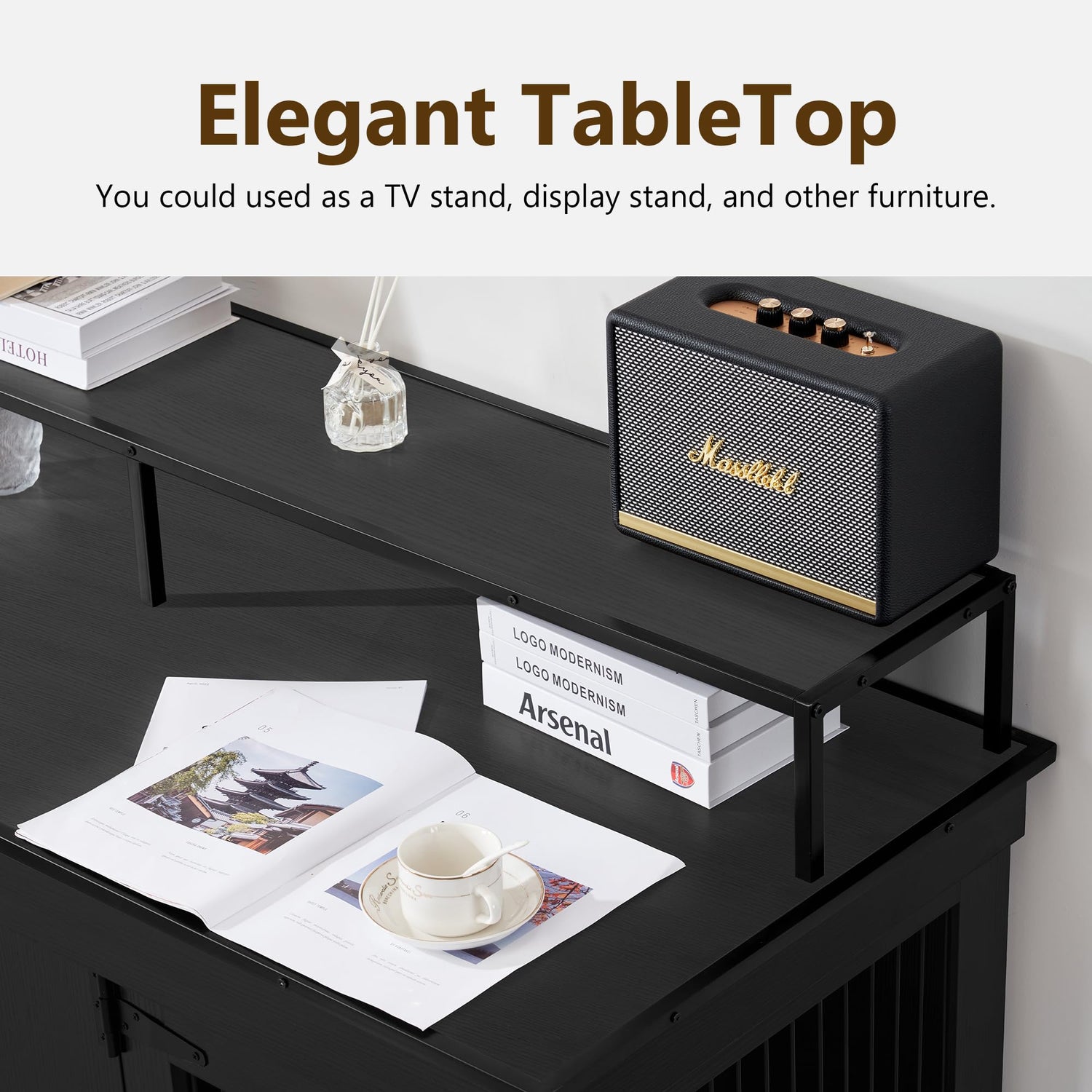 MCombo Large Dog Crate Furniture TV Stand, Wooden Dog Kennel with Double Doors, Indoor Furniture Style Dog Crate House End Table, 1861 (Black)