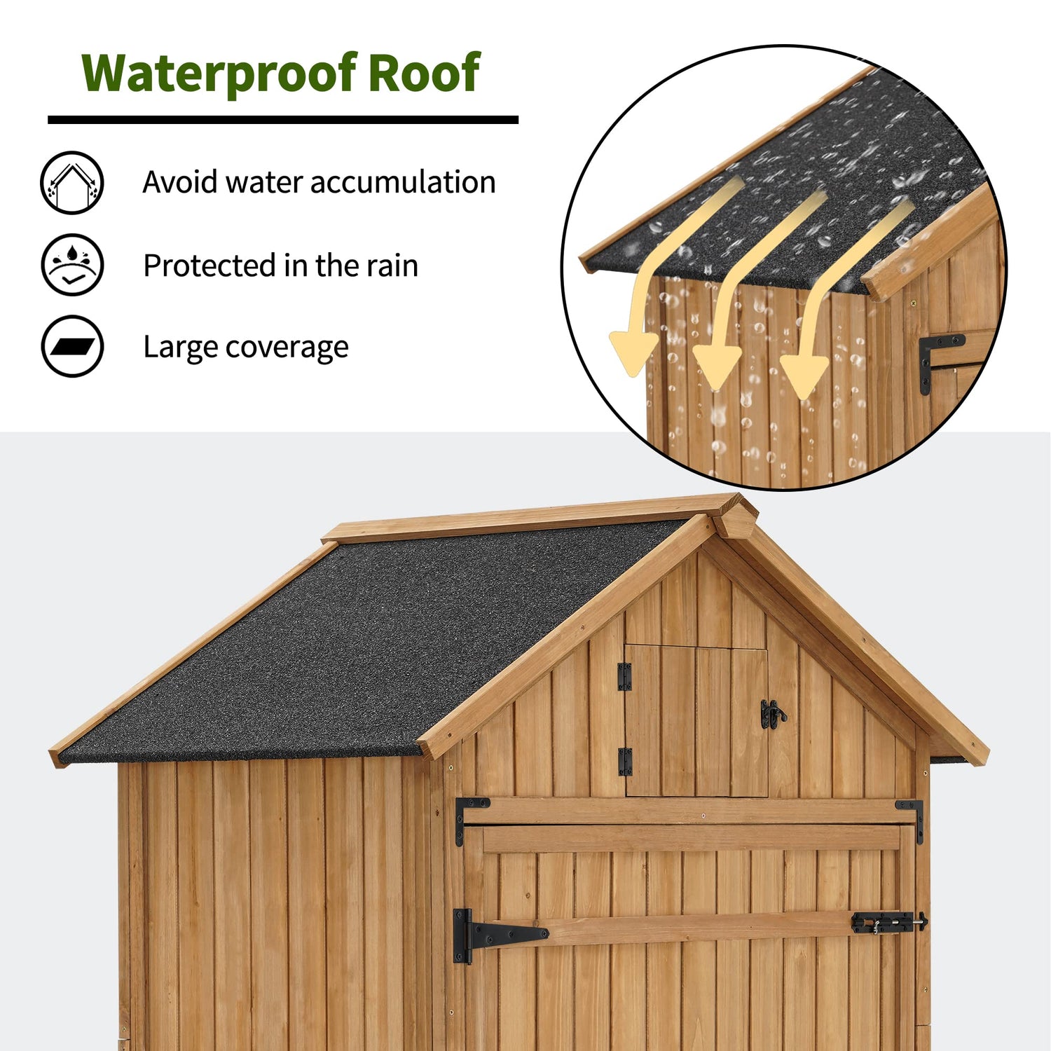 - Fir Wood: The outside storage shed is made of high-quality pure fir wood, and the exterior has been polished to express a rustic style. Medium brown blends easily with other décor and natural settings.