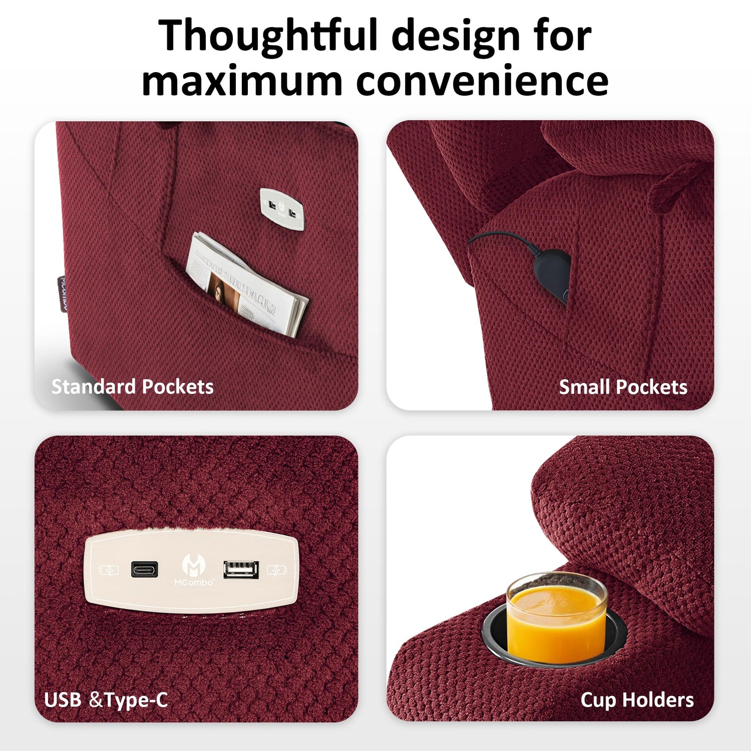 MCombo Large Triple Motor Power Lift Recliner Chair with Massage and Dual Heating, Adjustable Headrest for Tall Elderly People, Fabric 7634 (Burgundy, Large)
