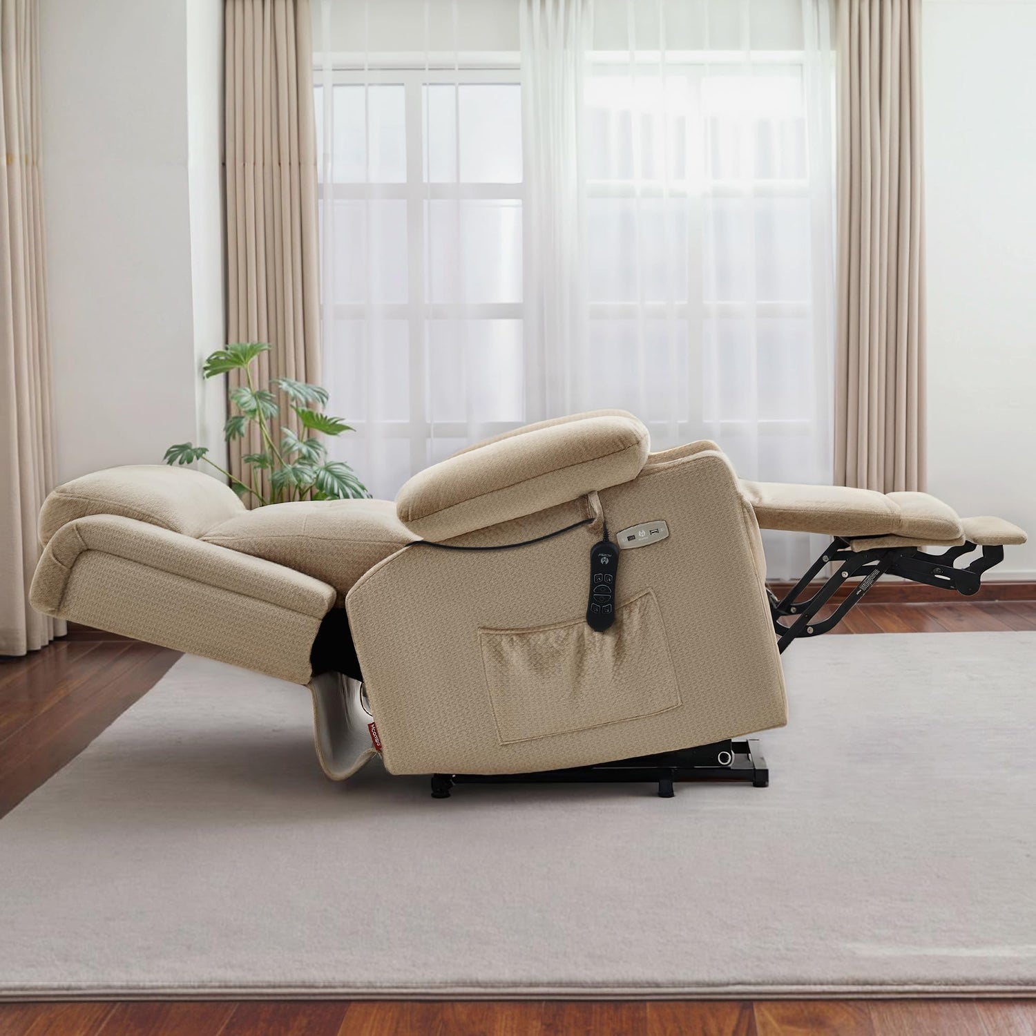 MCombo Large Triple Motor Power Lift Recliner Chair with Massage and Heat for Elderly People, Adjustable Headrest, Infinite Position, USB Ports, Fabric 7662 (Beige, Large)