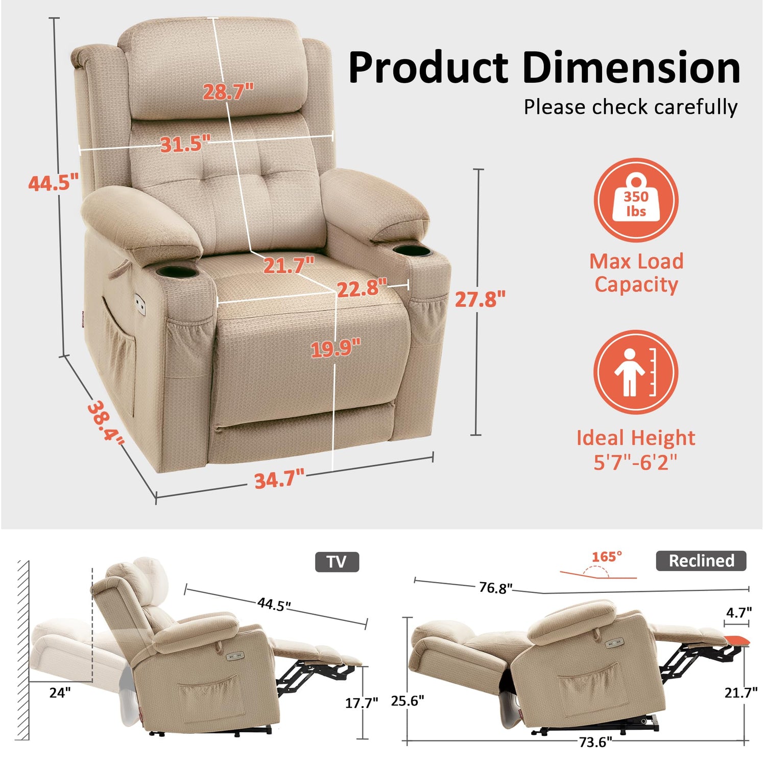 - Infinite Position: With the built-in triple motor, you can adjust the headrest, backrest, and footrest separately for infinite comfort positions. Ideal for reading, watching TV, napping, sleeping, or standing—perfect for those who struggle to sleep in a bed