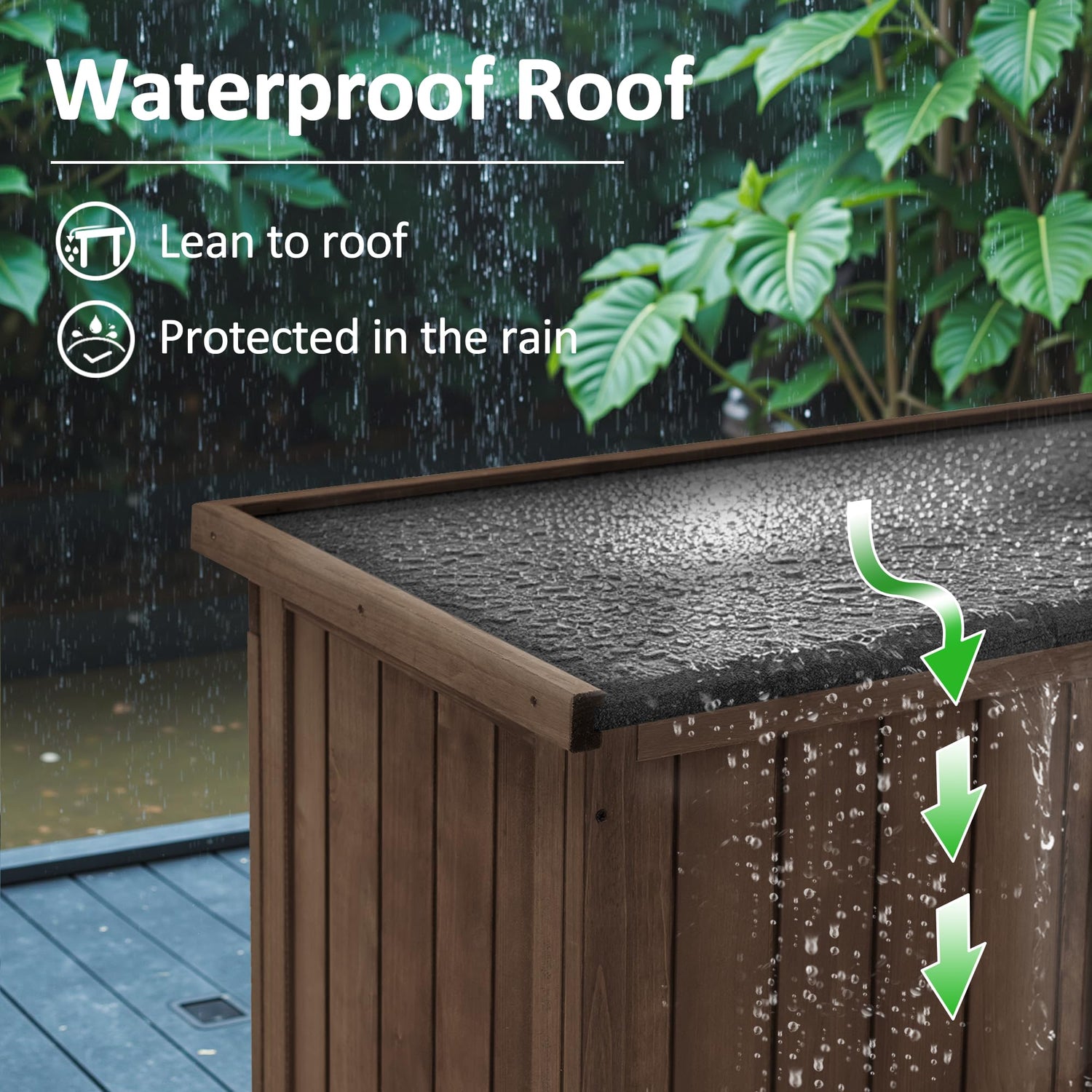 - Waterproof Roof: The sloping asphalt roof is not only waterproof but also avoids water accumulation, prolonging the life of the patio cabinet storage waterproof.