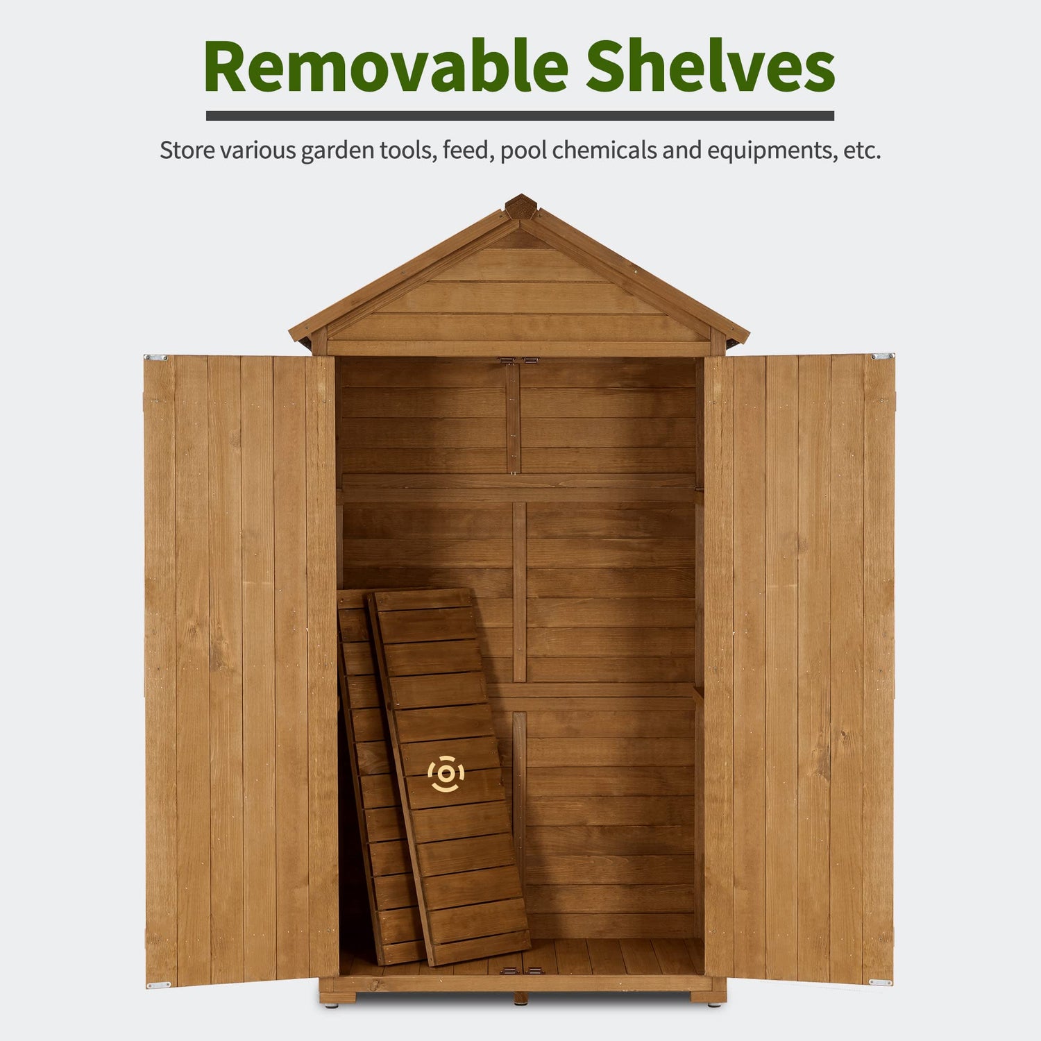 - Fir Wood Material : The outdoor storage shed is made of high-quanlity fir wood, and the exterior has been polished to express a rustic style. Besides, the outdoor garden shed is easily with other décor and natural settings.