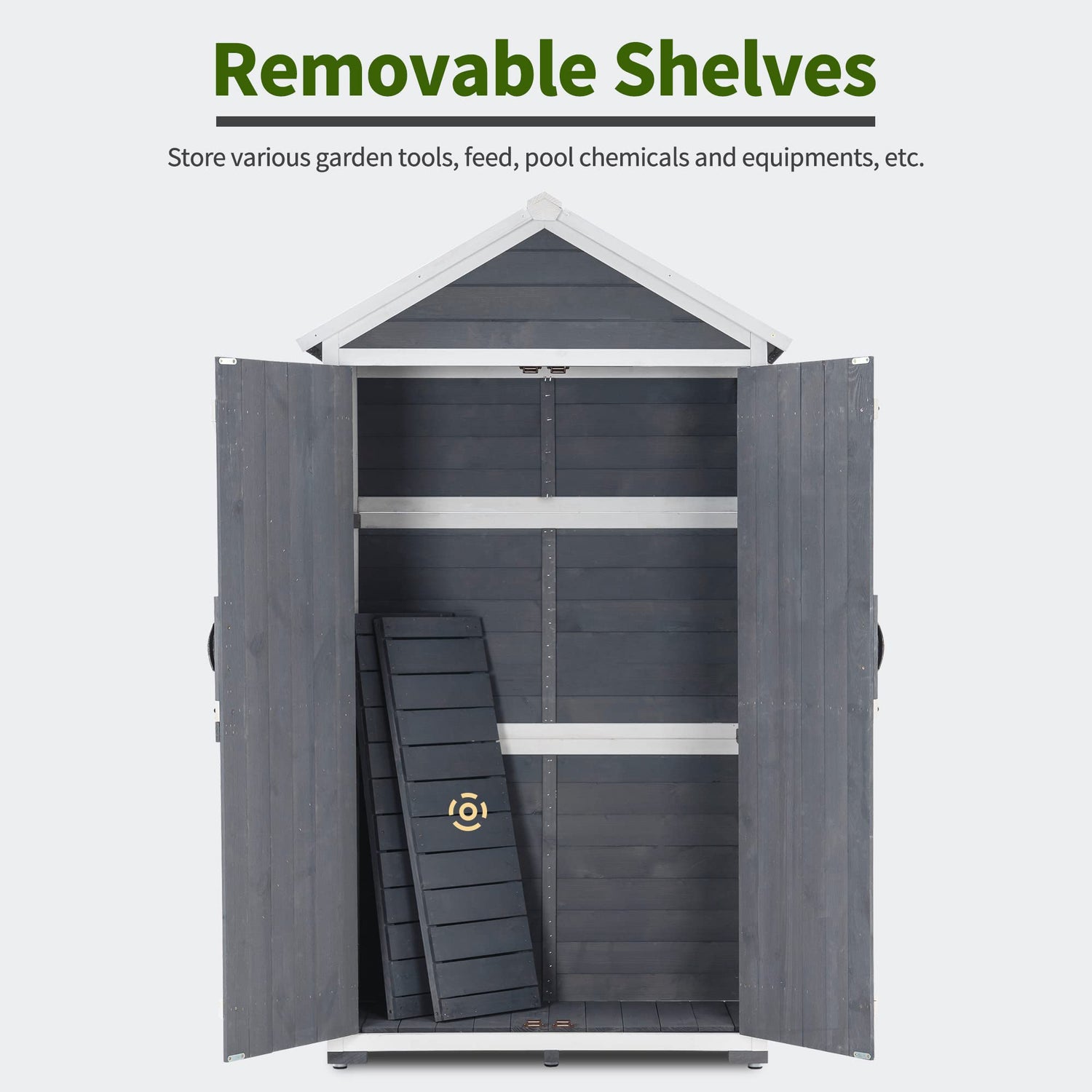 MCombo Outdoor Storage Cabinet with 2 Shelves, Outside Storage Shed with Floor, Wooden Garden Tool Shed with Latch for Yard Deck Lawn, 1000
