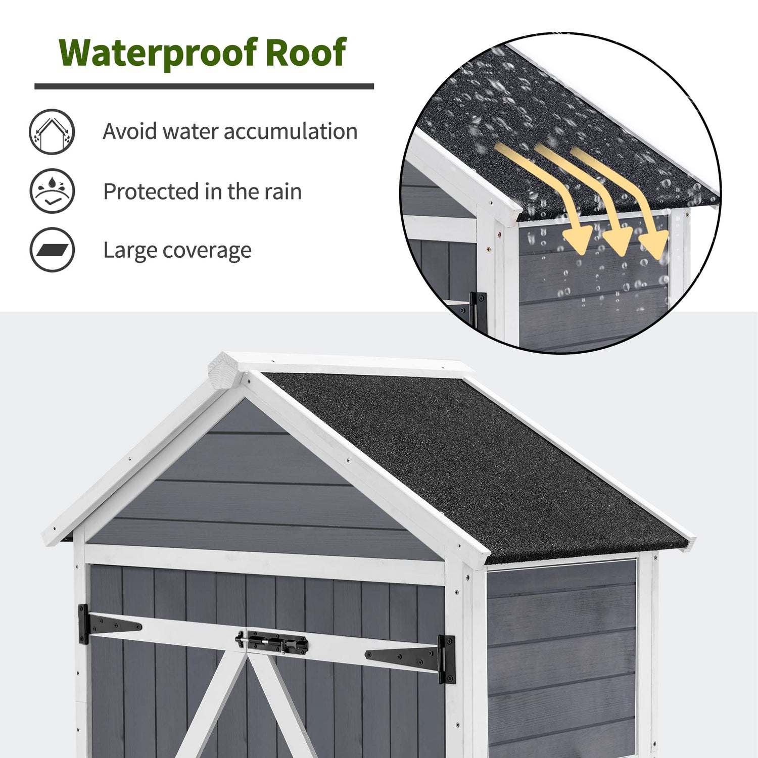 • Waterproof Roof: The sloping asphalt roof is designed to be waterproof, preventing water accumulation and protecting your stored items; This weatherproof feature extends the lifespan of the vertical storage shed, keeping your tools safe from the elements