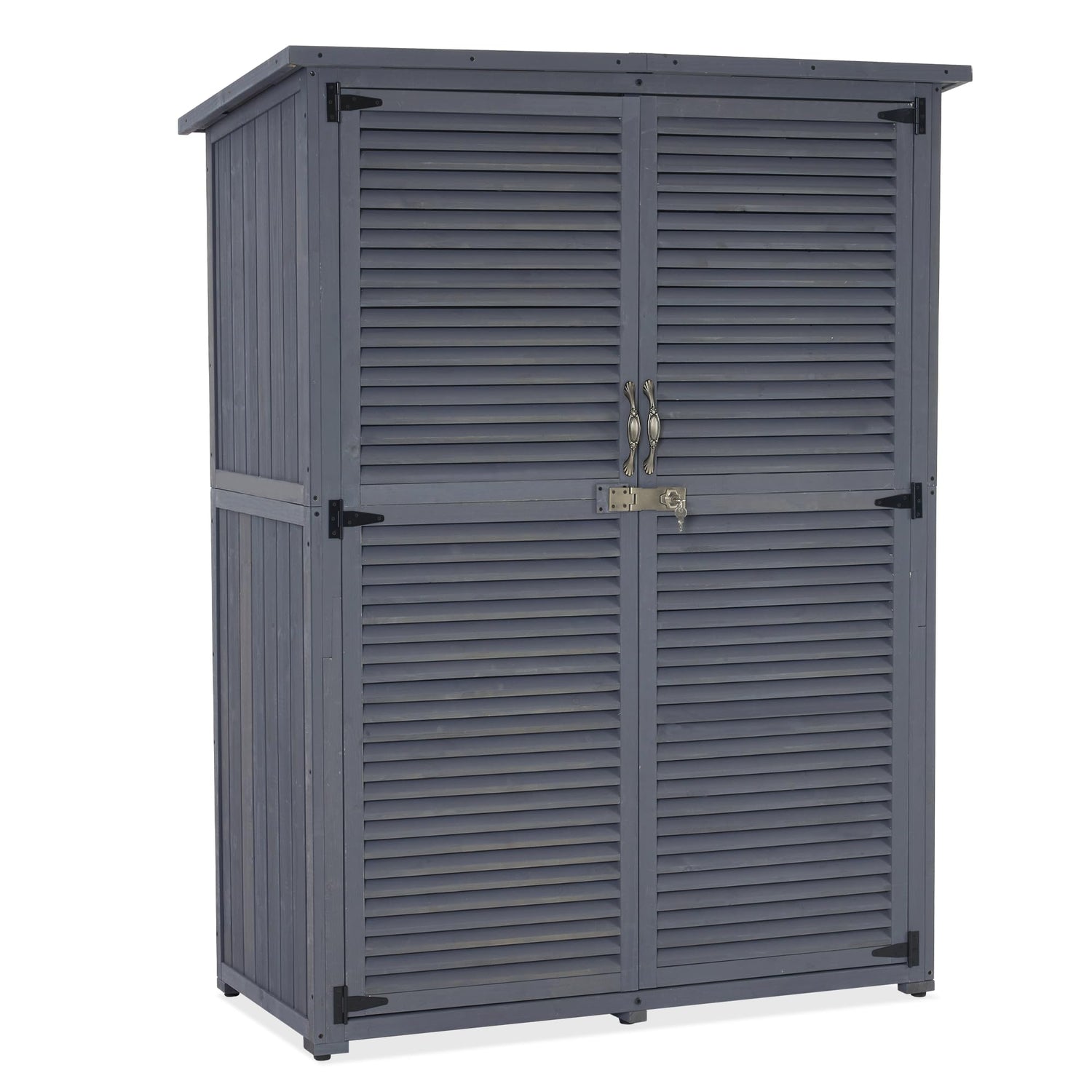 MCombo Outdoor Storage Cabinet, Wooden Storage Shed with Latch, Outside Garden Tool Shed with 2 Doors for Patio Yard Lawn, 1900 (Grey, Large)