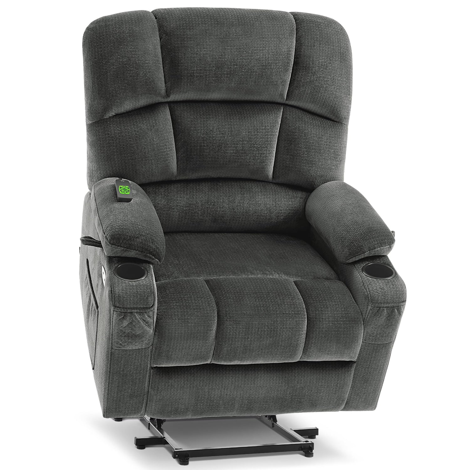 MCombo Oversized Dual Motor Power Lift Recliner Chair Sofa with Massage and Heat for Big Elderly People, Infinite Position, USB Ports, Fabric R7688 (Grey, Large-Oversize)