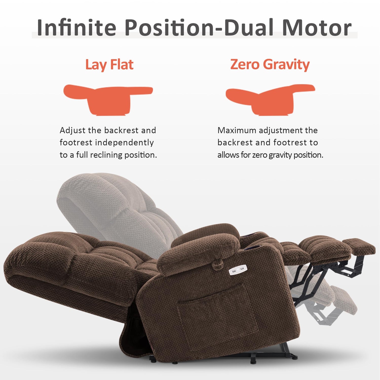 - DUAL MOTOR: With the help of built-in dual motor, the chair's backrest and footrest work independently, it means you can adjust to the infinite position you want, lift, TV, and lay flat (Max reclining angle: 165°)