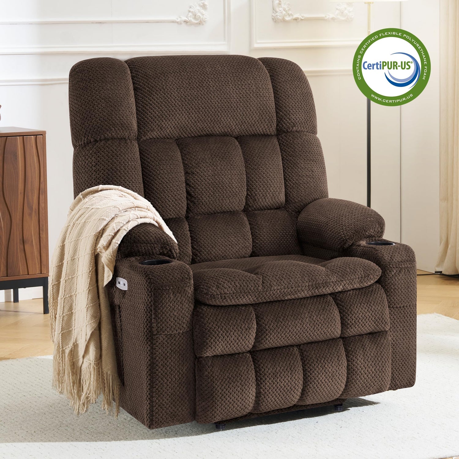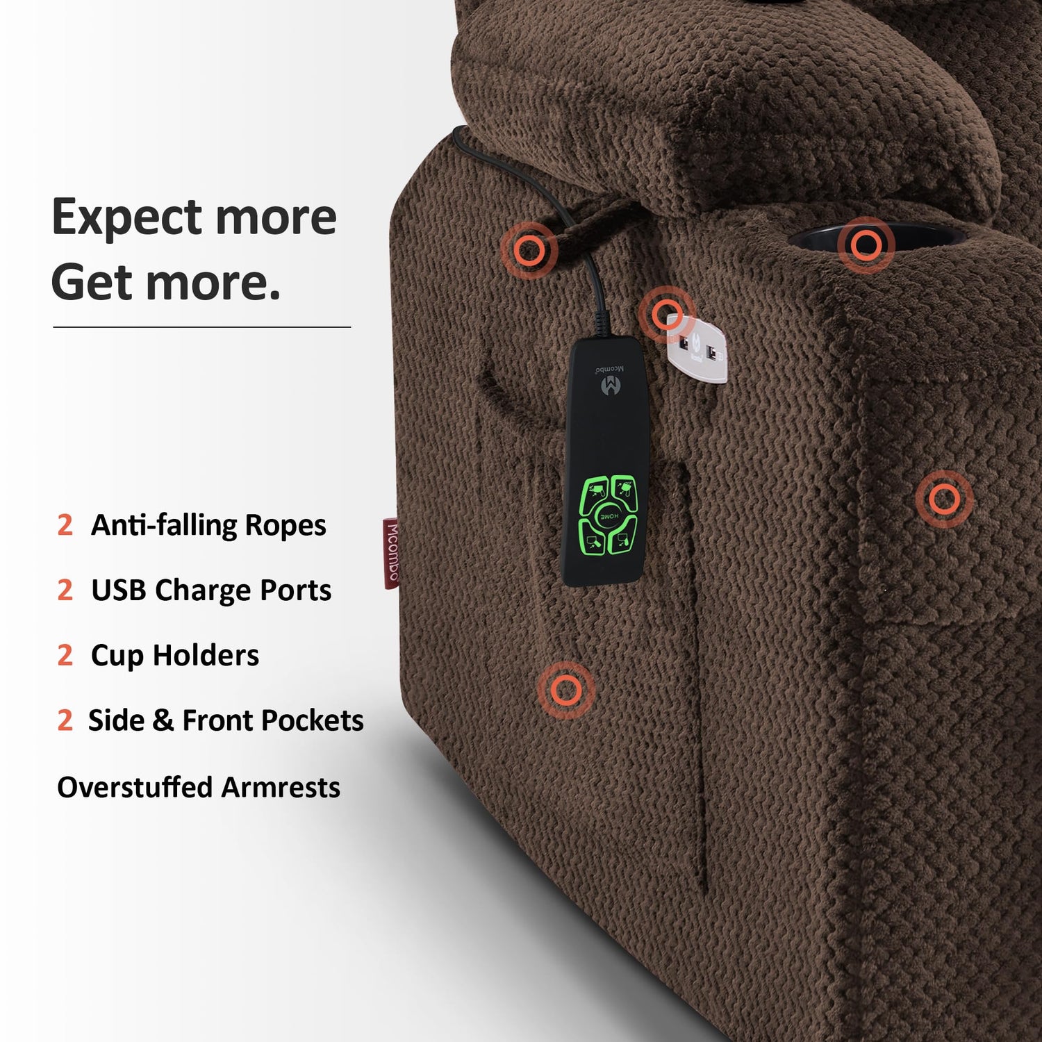 MCombo Oversized Power Lift Recliner Chair for Elderly, Dual Motor Lift Chair with Heat and Massage, Lay Flat Lift Chair for Big and Tall, Cup Holders, Fabric R7891 (Oversize, Mocha)