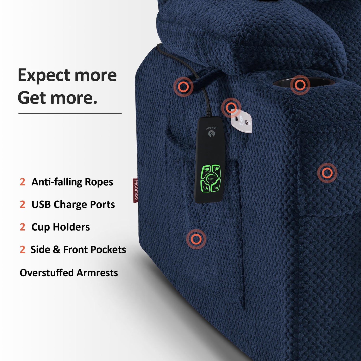MCombo Oversized Power Lift Recliner Chair for Elderly, Dual Motor Lift Chair with Heat and Massage, Lay Flat Lift Chair for Big and Tall, Cup Holders, Fabric R7891 (Oversize, Navy Blue)
