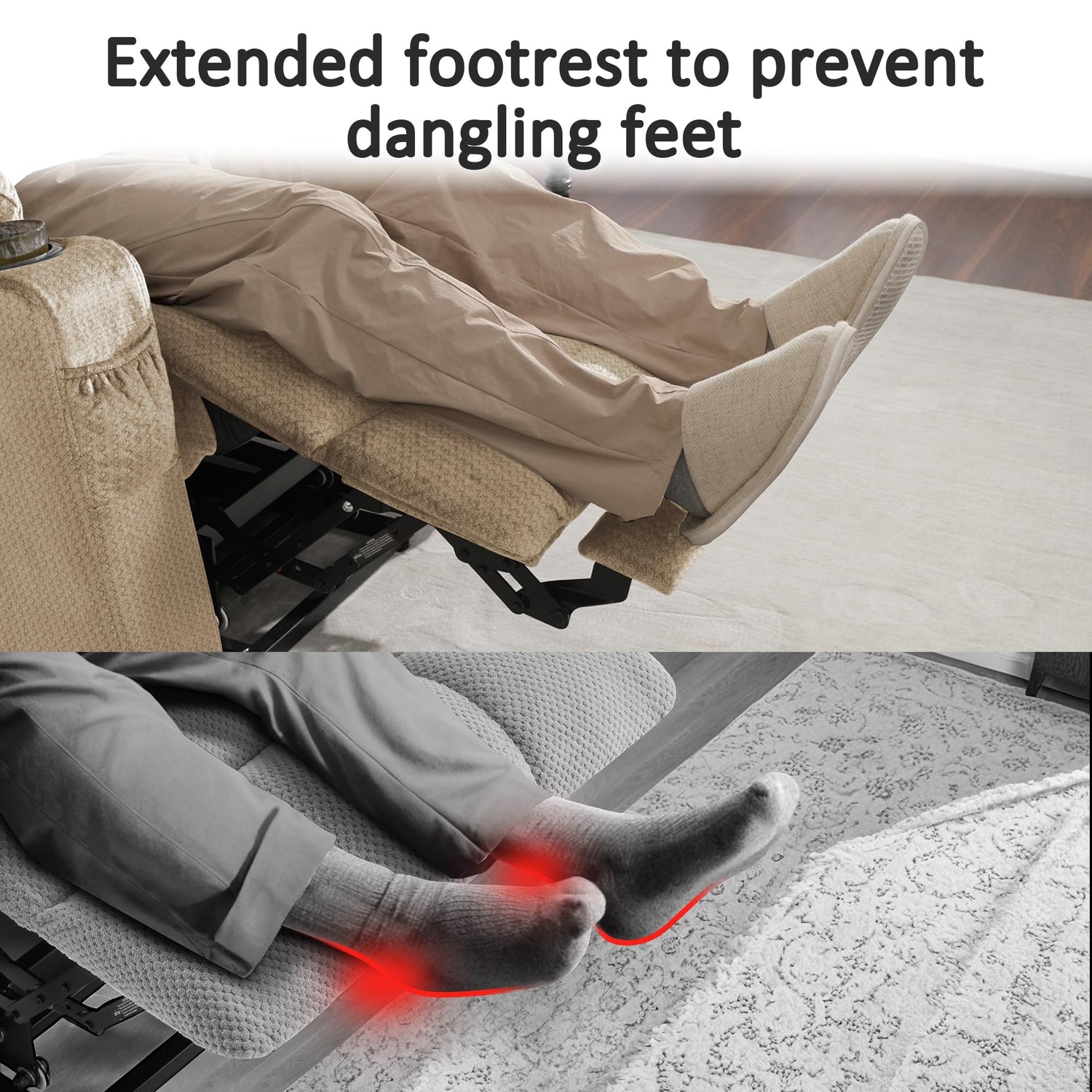 - Power Lift Assistance: Counter-balanced lift mechanism to assist the senior in standing up easily, and smoothly adjusting to the lift or reclining position you prefer by pressing buttons (Max reclining angle: 140°)