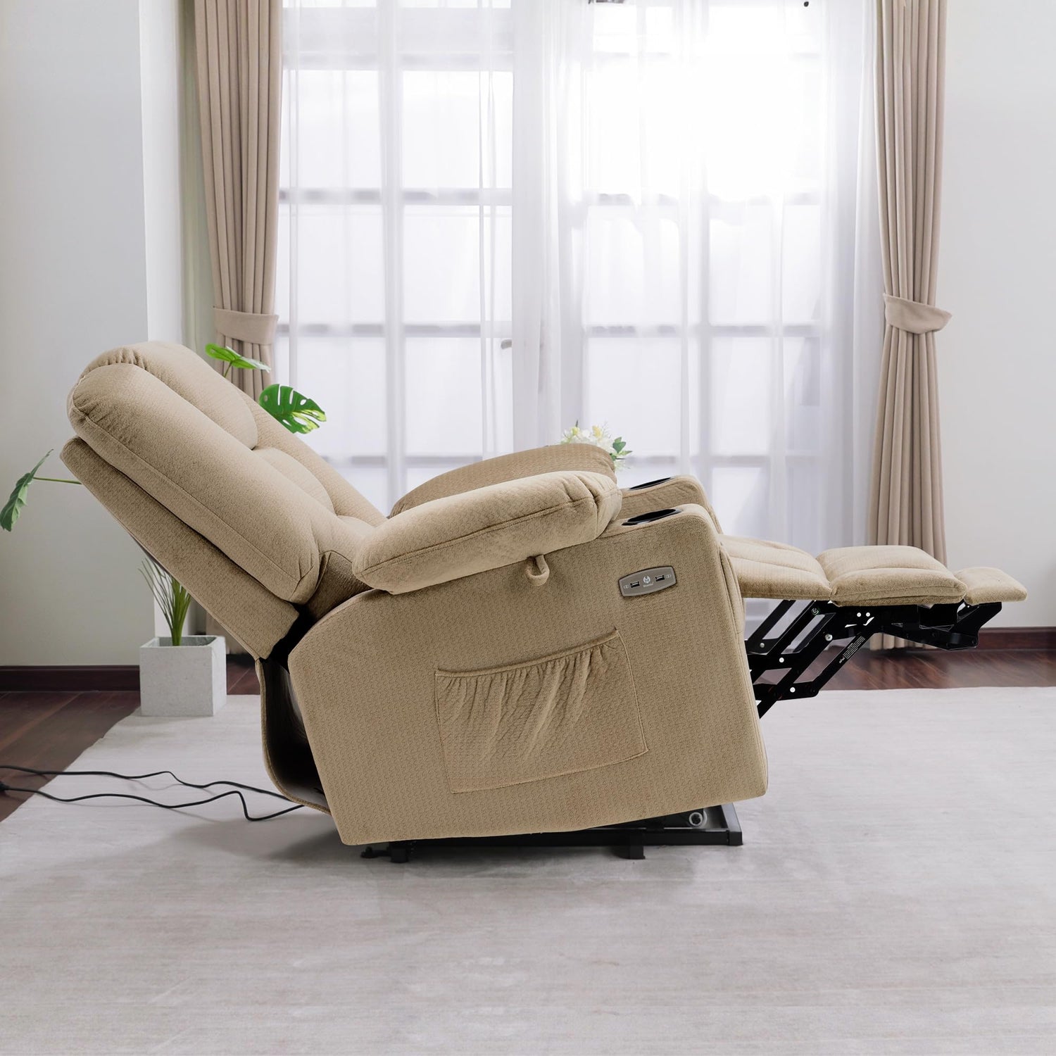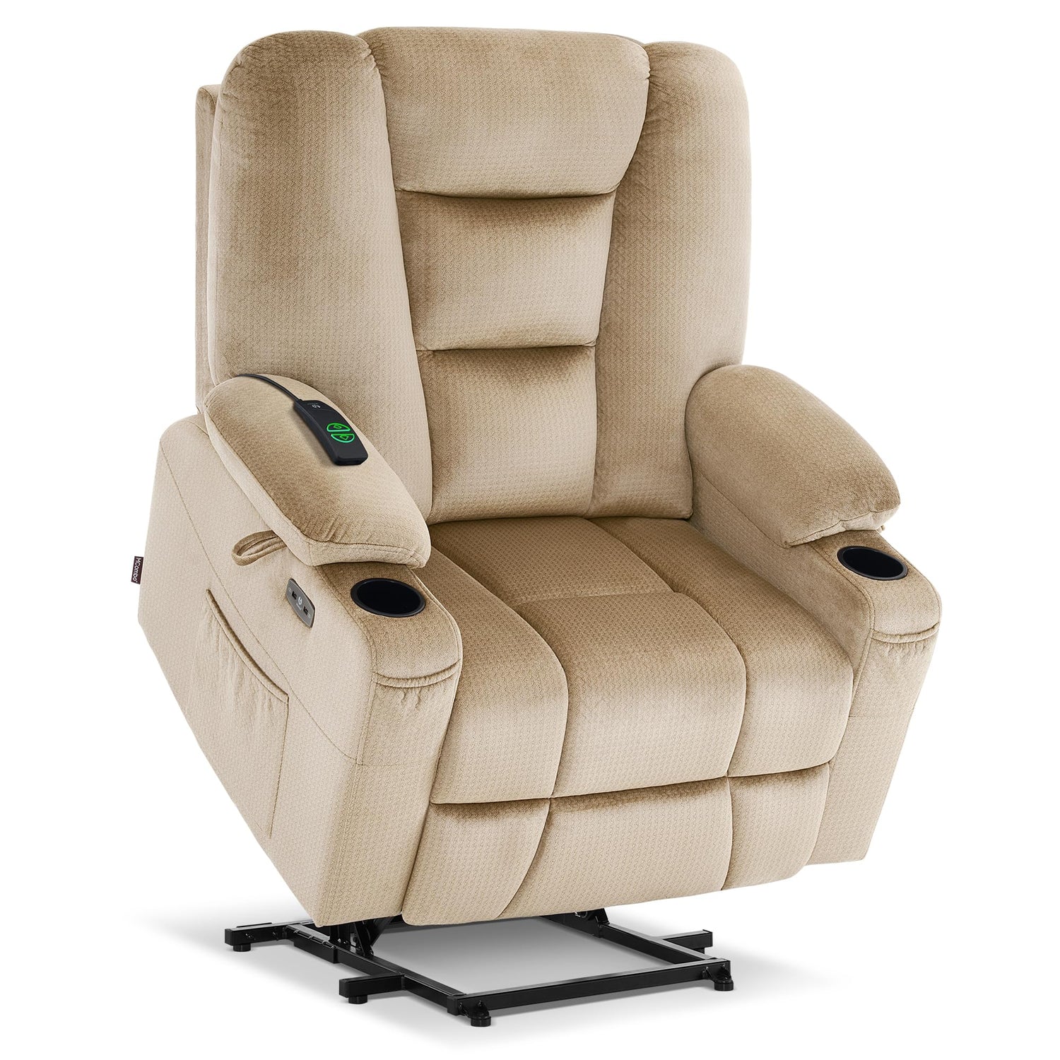 MCombo Oversized Power Lift Recliner Chair Sofa with Massage and Heat for Elderly People Petite, USB Ports, Side Pockets, Fabric R7561 (Beige, Small-Oversize)